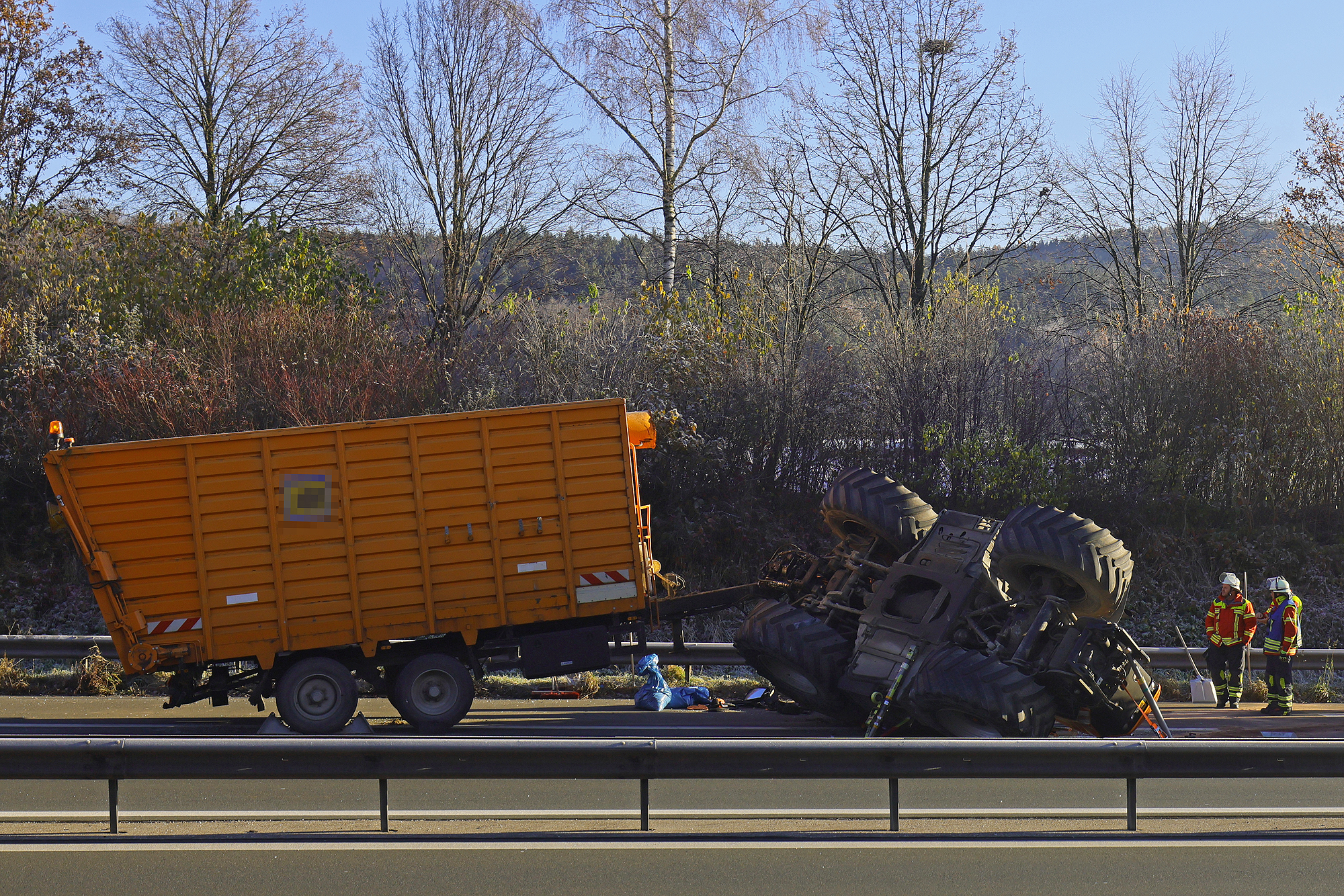 Ein Fastrac ist grundsätzlich so beschaffen, dass er auch auf einer Autobahn fahren darf. Beamte der Verkehrspolizeiinspektion Traunstein nahmen den genauen Hergang auf und schätzen den Sachschaden auf rund 400.000 Euro.Während des Unfalls und der Bergung war die A8 in Richtung München zeitweise komplett gesperrt, wobei der Stau bis weit über die Landesgrenze zurückreichte.
