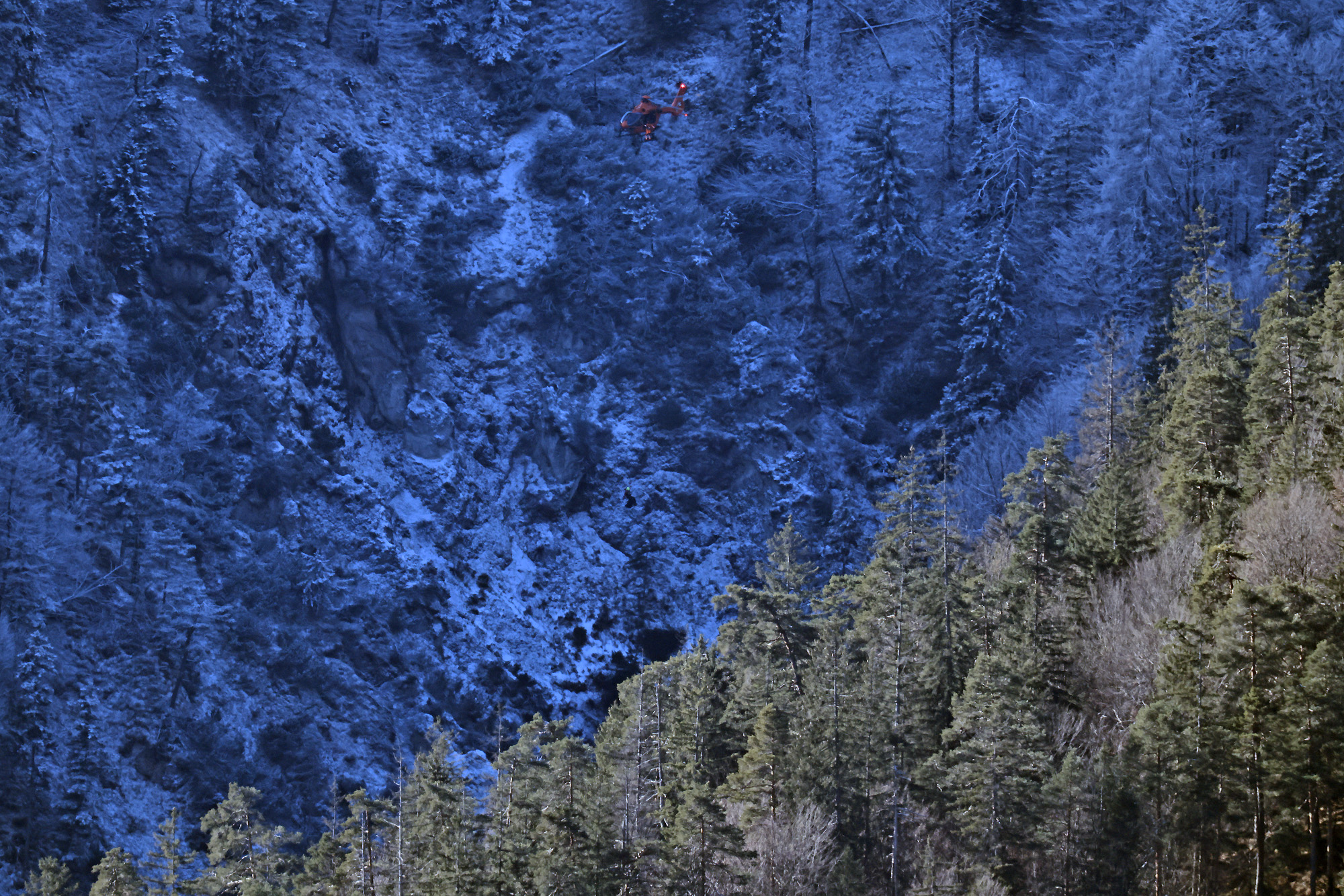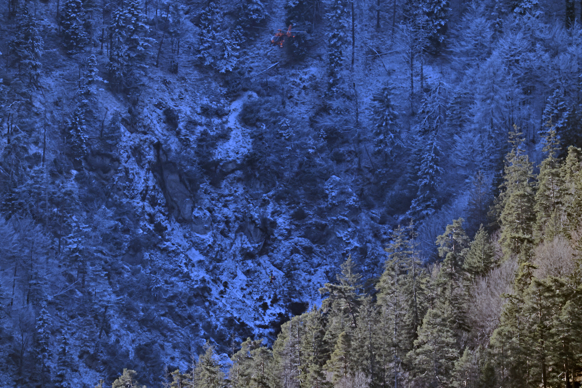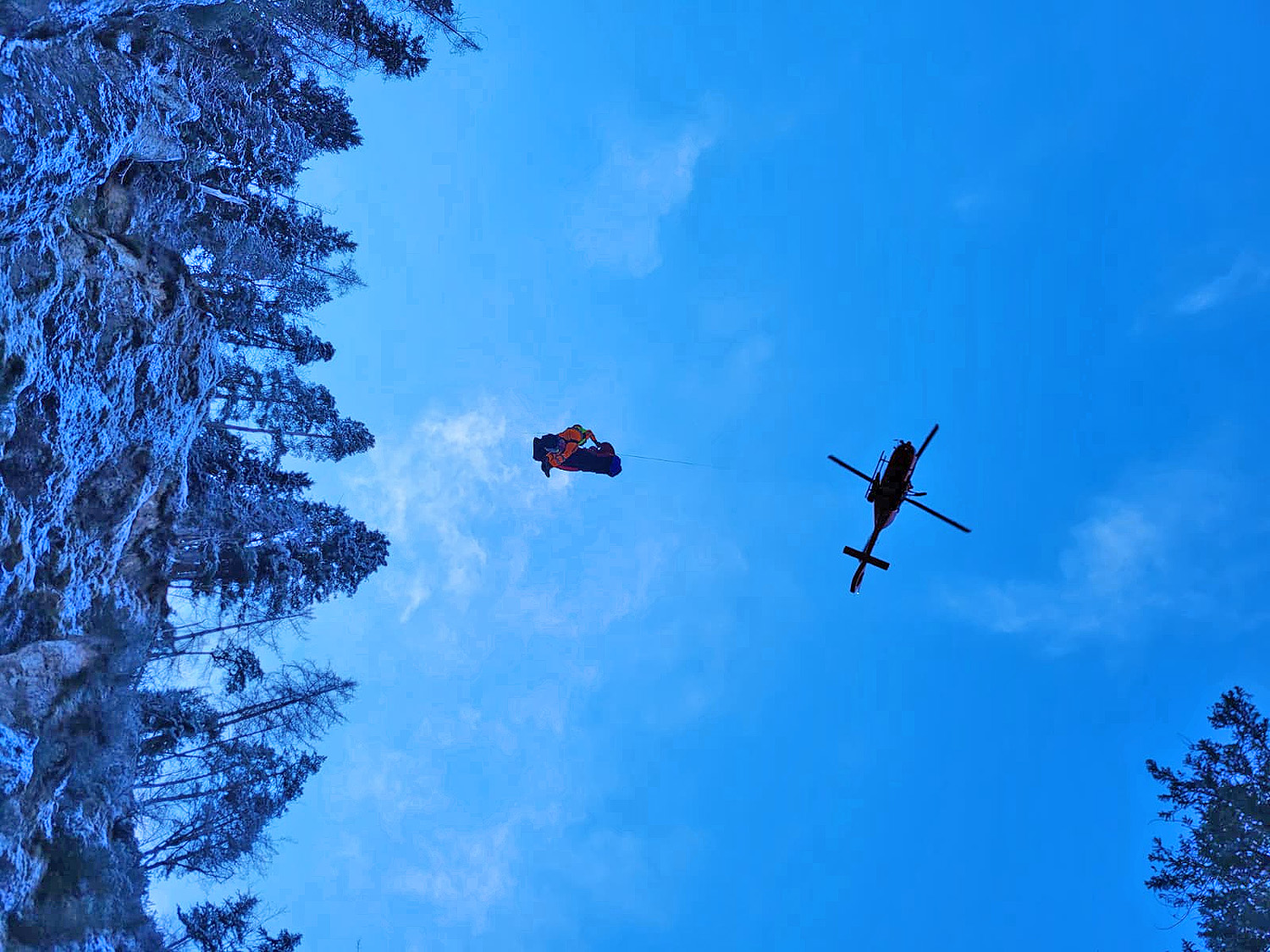 BISCHOFSWIESENER FORST – Die Reichenhaller Bergwacht und die Besatzung des Traunsteiner Rettungshubschraubers „Christoph 14“ haben am ersten Weihnachtsfeiertag eine 55-jährige Flachgauerin gerettet, die im östlichen Lattengebirge rund drei Meter abgestürzt war und sich schwer an der Hüfte verletzt hatte. Die Frau und ihr Begleiter wollten eigentlich vom Klaushäusl entlang des Weißbachs zur Steinernen Agnes aufsteigen, wo die Frau dann am in der schattigen Schlucht stellenweise vereisten Steig ausrutschte.