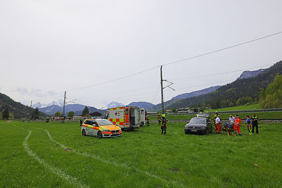BISCHOFSWIESEN – Am Dienstagmittag gegen 12.45 Uhr hat sich auf der B20 am Eisenrichter ein spektakulärer Verkehrsunfall ereignet, bei dem eine 69-Jährige aus dem Landkreis Rosenheim nach erster Einschätzung des Roten Kreuzes mittelschwer verletzt wurde. Den bisherigen Ermittlungen der Berchtesgadener Polizei zufolge war die Frau auf der B20 in Richtung Hallthurm unterwegs, als sie kurz nach der Einmündung des Holzstubenwegs aus unbekannter Ursache nach rechts von der Straße abkam, rund 50 Meter weit auf der Leitplanke schlitterte, die Böschung hinunterfuhr, die Bahngleise querte und dann in der Wiese stehenblieb.