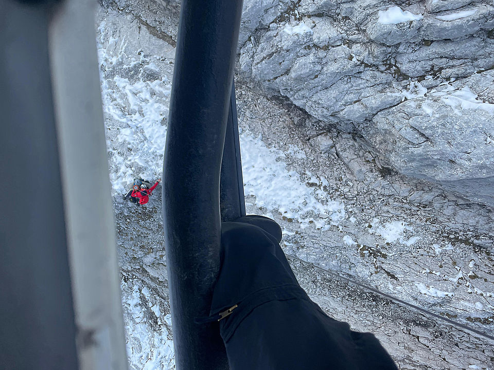 Um 16 Uhr brauchten dann zwei unverletzte Urlauber Hilfe, die sich im Abstieg vom Hochkalter durch das Ofental nicht links gehalten hatten, sondern geradeaus weiter die Rinne abgestiegen waren, in der sie schließlich nicht mehr weiterkamen. Die Besatzung des Polizeihubschraubers „Edelweiß 18“ setzte zwei Ramsauer Bergretter ab, die die beiden Männer sicherten und für den Abtransport mit der Rettungswinde vorbereiteten. Als es gegen 19 Uhr dunkel wurde, waren wieder alle wohlbehalten im Tal zurück.