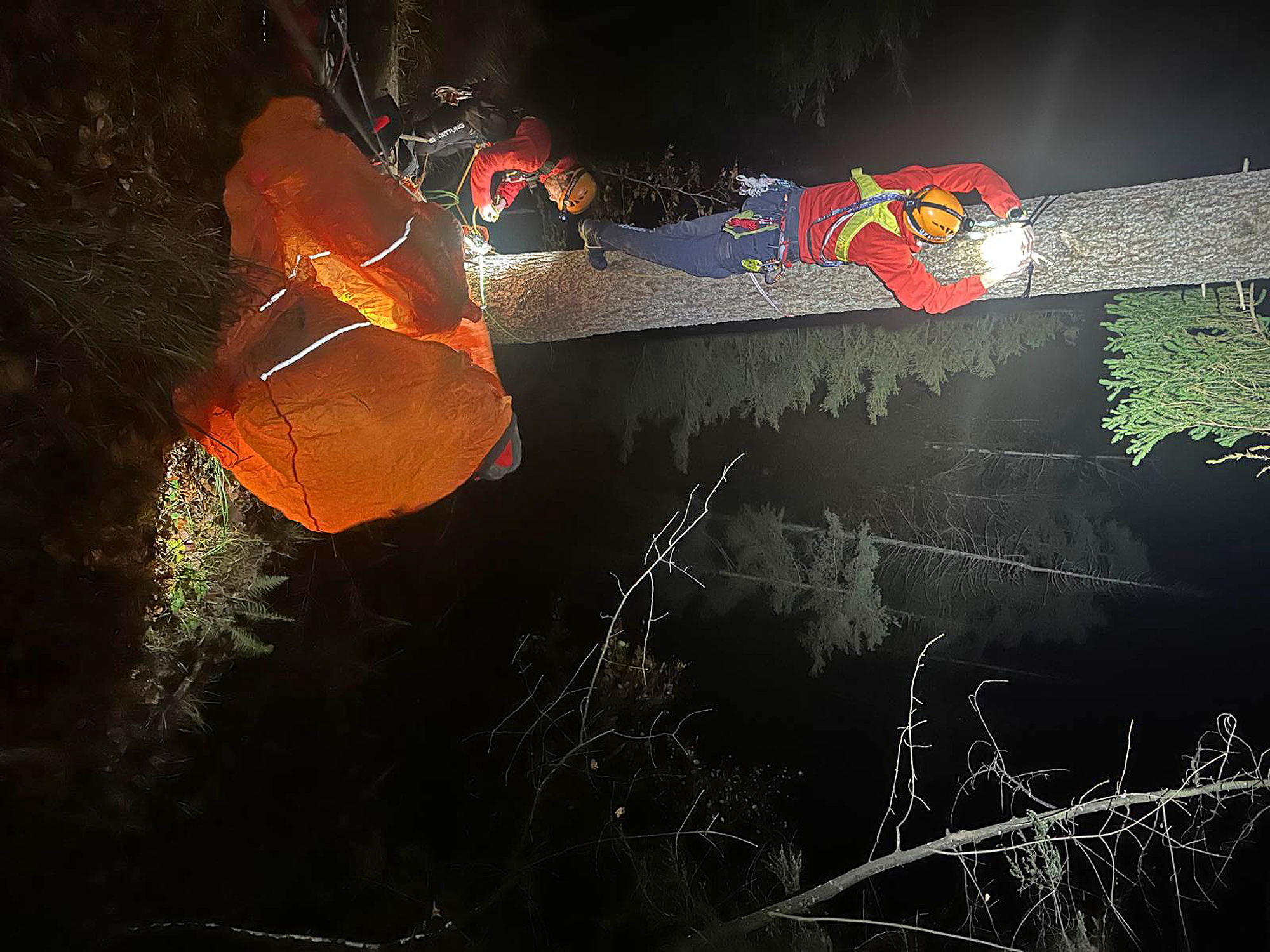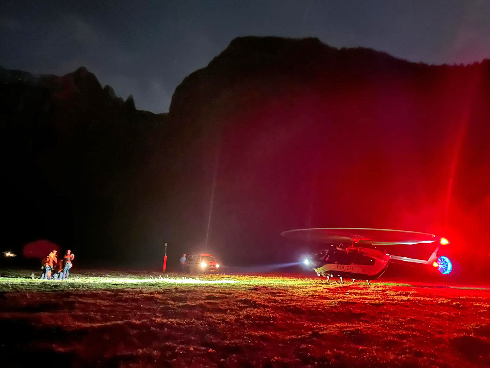 BERCHTESGADEN/SCHÖNAU AM KÖNIGSSEE – Am späten Freitagnachmittag (31. Oktober) mussten acht Einsatzkräfte der Bergwacht Berchtesgaden zu insgesamt vier zeitgleichen Einsätzen am winterlichen Hohen Göll und am Torrener Joch ausrücken: Gegen 17.20 Uhr meldete sich ein 33-jähriger Schwabe über Notruf, der sich in der einsetzenden Dunkelheit am Jagerwieselsteig im Bereich Trichterwiesel verstiegen hatte. Zwei Einsatzkräfte gingen zu Fuß los, um den Unverletzten zu versorgen und den Wärmeerhalt sicherzustellen, da der vom Stützpunkt Roth bei Nürnberg angeforderte nachflugtaugliche Polizeihubschrauber „Edelweiß 8“ mit Rettungswinde rund eineinhalb Stunden Anflugzeit bis zur Göll-Westwand benötigte. Gegen 19.20 Uhr riefen dann nur rund einen Kilometer Luftlinie entfernt auf etwa gleicher Höhe eine 31-jährige Frau und ein 37-jähriger Mann aus Baden-Württemberg an, die in den Göll-Umgängen erschöpft in der Dunkelheit nicht mehr ohne Hilfe absteigen konnten. Gegen 19.30 Uhr folgte der dritte Notruf von zwei 38 und 47 Jahre alten Münchnern, die ebenfalls in den Umgängen nicht mehr weiterkamen, da sich der 38-Jährige am Bein verletzt hatte. Ebenfalls um 19.30 Uhr ging ein vierter Notruf vom Stahlhaus am Torrener Joch ein, wo ein Bewusstloser notärztliche Hilfe brauchte. Zwei Bergretter fuhren mit dem Rettungsfahrzeug an; die Besatzung des Pongauer Notarzthubschraubers „Martin 1“ absolvierte den Einsatz dann aber ohne weitere Hilfe durch die Bergwacht.