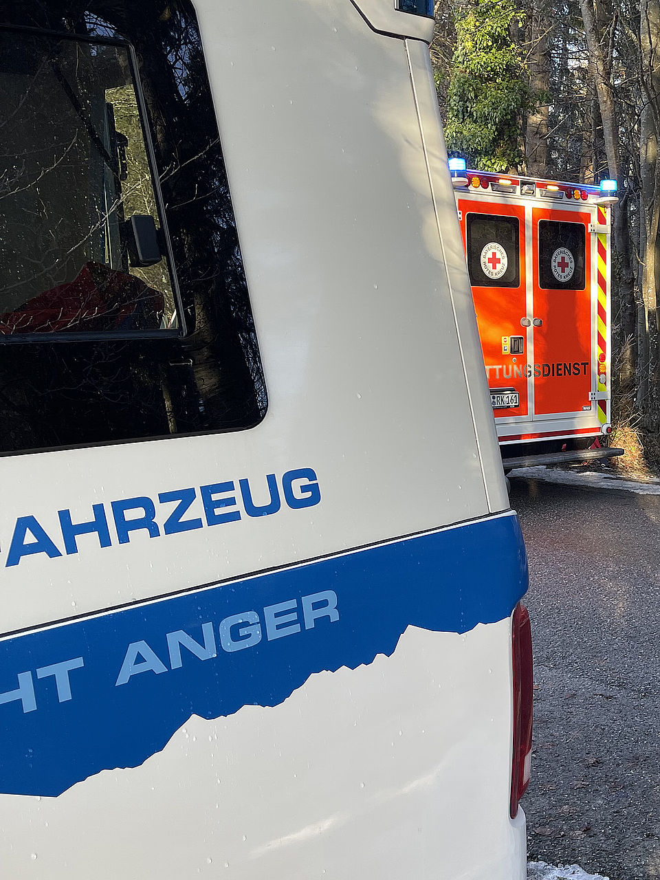 Kurz nach 14 Uhr brauchte eine 62-jährige Salzburgerin Hilfe, die auf dem wegen der aktuell eisigen Verhältnisse und wegen Baumfällarbeiten gesperrten Weg um den Höglwörther See gestürzt war und sich sehr schmerzhaft am Becken verletzt hatte. Die Rettungswagen-Besatzung des Reichenhaller Roten Kreuzes und die Bergwacht fuhren auf der Westseite über die Ramsauer Straße an, stiegen am Weg entlang der Kaskaden des Höglwörther Seebachs zur Einsatzstelle an der Einmündung ab, versorgten die Verunfallte, brachten sie mit der Radltrage hinauf zum Rettungswagen und lieferten sie dann in die Kreisklinik Bad Reichenhall ein. Vier Angerer und zwei Reichenhaller Bergretter waren rund eine Stunde lang im Einsatz. Trotz des in weiten Abschnitten vereisten Wegs und der aktuellen Sperre mit Barken und zusätzlichen Bannern waren am Sonntag sehr viele Menschen rund um den See unterwegs.
