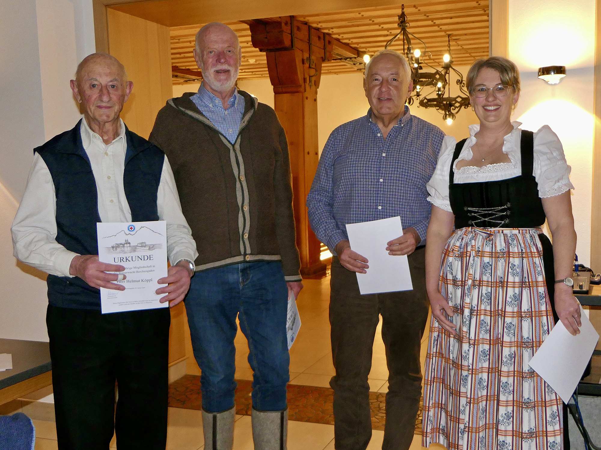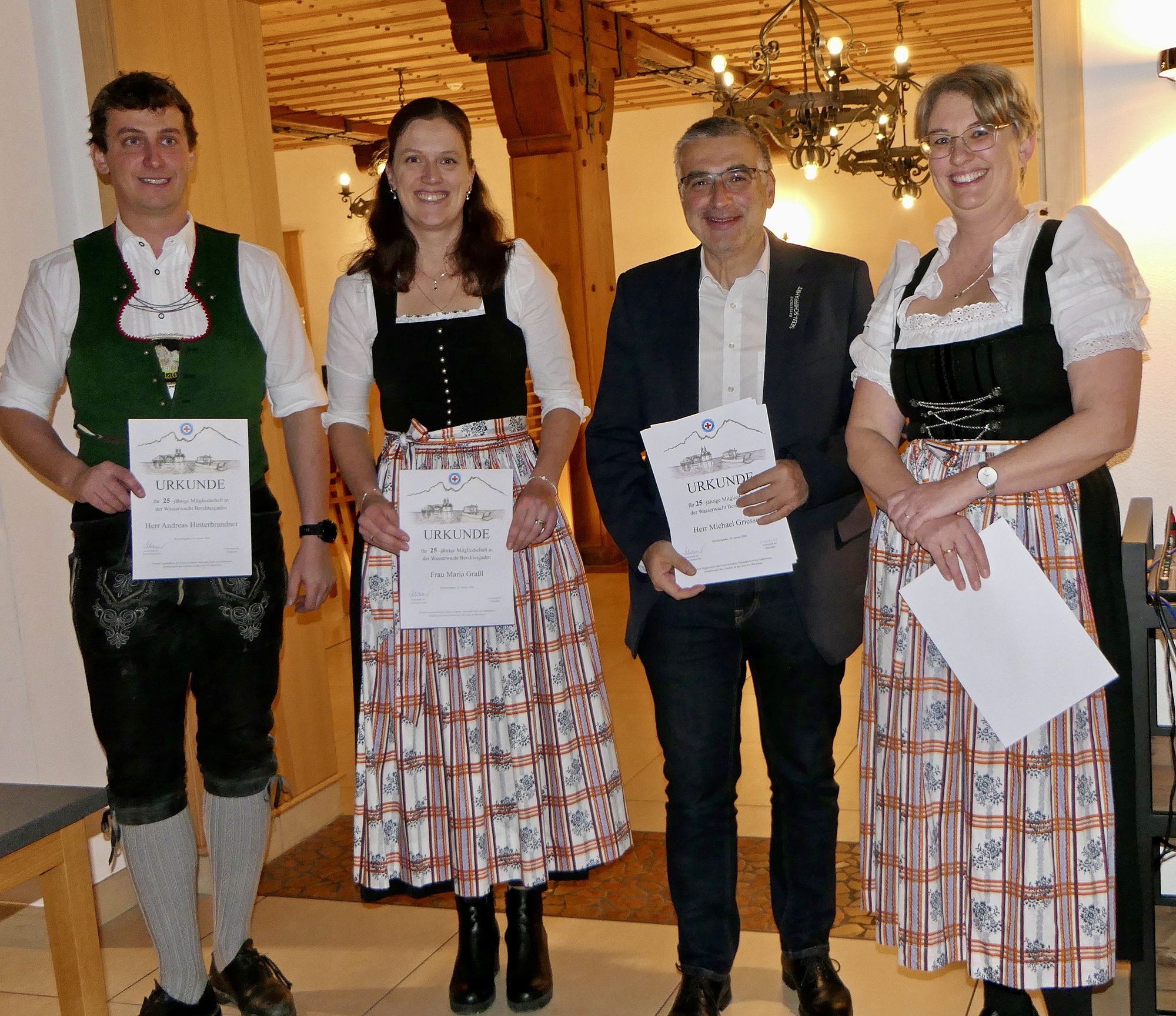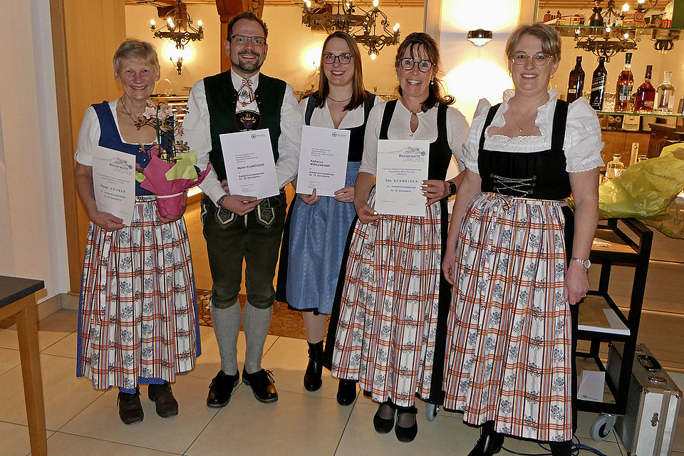 Mit 1.135 Mitgliedern zum Jahresende 2025, darunter 53 Neuaufnahmen und 376 Kinder und Jugendliche zwischen sechs und 15 Jahren, bleibt die Ortsgruppe eine starke Gemeinschaft im inneren Landkreis. Die intensive Nachwuchsarbeit der 13 Gruppenleiter und ihrer Helfer trägt sichtbar Früchte: 210 Kinder nahmen durchschnittlich am dreieinhalbstündigen Training an 29 Donnerstagen in der Watzmanntherme teil. Insgesamt absolvierten die Buben und Mädchen 96 Seepferdchen, 52 bronzene, 25 silberne und 29 goldene Schwimmabzeichen und elf Deutsche Rettungsschwimmabzeichen in Silber. Zudem konnten neun neue Rettungsschwimmer für den Wasserrettungsdienst ausgebildet werden. An fünf Schulen unterstützten zwölf Ehrenamtliche an bis zu fünf Tagen pro Woche die Lehrer beim Schulschwimmen, ermöglichten zwei zusätzliche Schwimmkurse in den Freibädern und die Schulschwimmwoche in Bischofswiesen und leisteten dabei insgesamt 267 Ausbildungsstunden. Ein gemeinsames Zeltlager mit der Ortsgruppe Bad Reichenhall, Ferienprogramme und weitere Aktivitäten stärkten zusätzlich den Zusammenhalt der Jugend. Emilie Pamer, Moritz Rosenberger, Uli Riemer und Markus Anfang wurden als neue Aktive in die Wasserwacht aufgenommen.