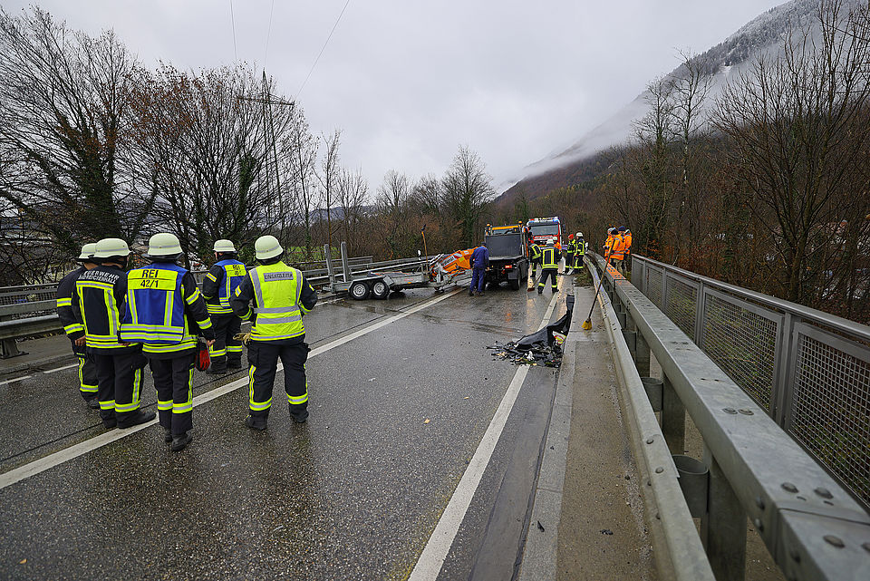 Die Feuerwehr sicherte die Unfallstelle ab, reinigte die Fahrbahn von Trümmern und Splittern und leitete den restlichen Verkehr lokal durch das Stadtgebiet um, wobei sich durch die blockierte Brücke Staus in alle Richtungen bildeten. Beamte der Reichenhaller Polizei nahmen den genauen Hergang auf.