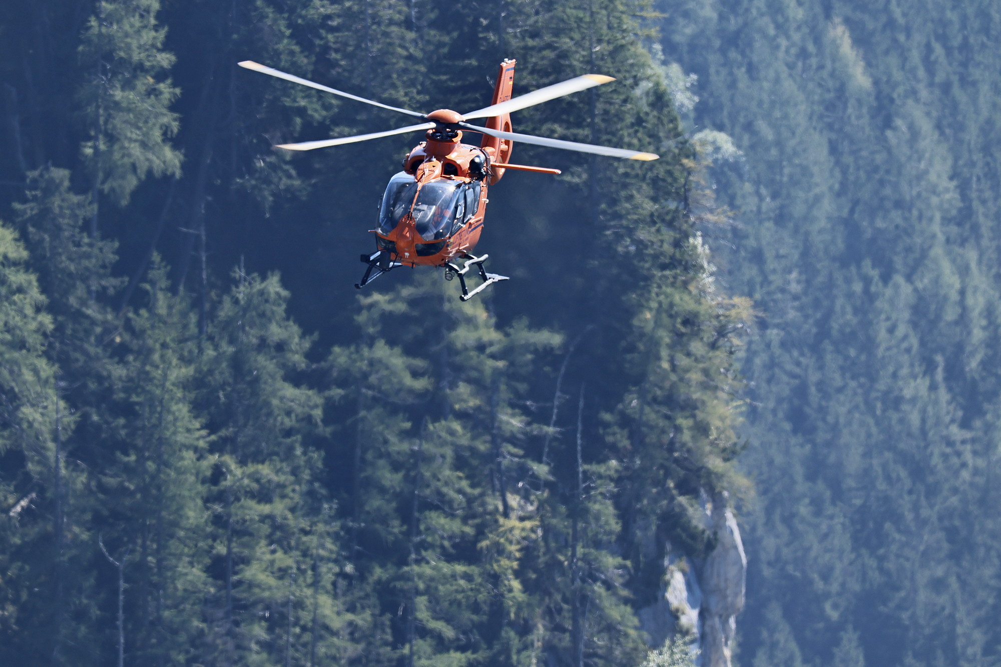 SCHELLENBERGER FORST – Am Freitagnachmittag (3. Oktober) gegen 14 Uhr ist eine 45-jährige Kletterin am Untersberg nordöstlich des Gamsalpkopf-Gipfels im Zustieg zu einer Route offenbar wegen eines ausgebrochenen Griffs einige Meter abgestürzt, wobei sie vom Stein getroffen und so schwer verletzt wurde, dass ihr Seilpartner Erste Hilfe leisten und den Notruf wählen musste. Der Einsatzleiter der Bergwacht Marktschellenberg ließ den Traunsteiner Rettungshubschrauber „Christoph 14“ direkt anfliegen und den Notarzt mit der Winde bei der Verunfallten absetzen, so dass bereits nach wenigen Minuten die notfallmedizinische Versorgung begann. Der Heli brachte dann vom Tallandeplatz einen Bergretter mit Luftrettungssack zur Einsatzstelle, der dem Arzt bei der Versorgung half. „Christoph 14“ landete währenddessen am Stöhrhaus, holte die Verunfallte und den Arzt dann mit der Winde ab und flog sie zum Klinikum Traunstein.