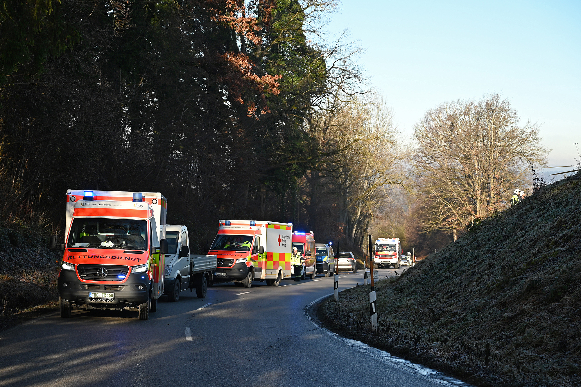 Die Leitstelle Traunstein schickte kurz nach 10 Uhr die Freiwillige Feuerwehr Teisendorf und das Rote Kreuz mit dem Teisendorfer Rettungswagen und dem Traunsteiner Rettungshubschrauber „Christoph 14“ und den neuen Rettungswagen aus Surheim zum Unfallort. Notarzt und Sanitäter versorgten die nach erster Einschätzung schwer Verletzte und brachten sie dann per Rettungswagen zum Klinikum Traunstein. Ersthelfer und die zweite Rettungswagen-Besatzung kümmerten sich um den unverletzten, aber betroffenen Autofahrer. 17 Feuerwehrleute waren mit drei Fahrzeugen vor Ort; sie sicherten die durch die Kurven schlecht einsehbare Unfallstelle ab und leiteten den restlichen Verkehr wechselseitig vorbei. Beamte der Freilassinger Polizei nahmen den genauen Hergang auf.