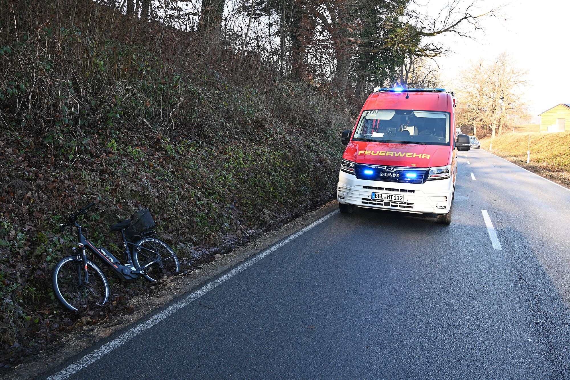 TEISENDORF/Roßdorf – Am Freitagvormittag ist auf der Staatsstraße 2103 bergauf zwischen Almeding und Oberstraß eine 67-jährige Pedelec aus Laufen von einem nachfolgenden Mercedes-Pritschenwagen mit dem rechten Außenspiegel am Kopf erfasst, schwer verletzt worden und gestürzt; der 61-jährige Unfallverursacher war durch die tief stehende Sonne und die leicht ansteigende Straße geblendet und hatte die Frau übersehen.