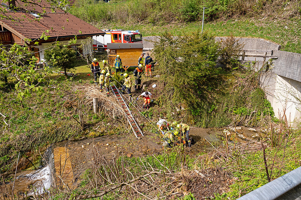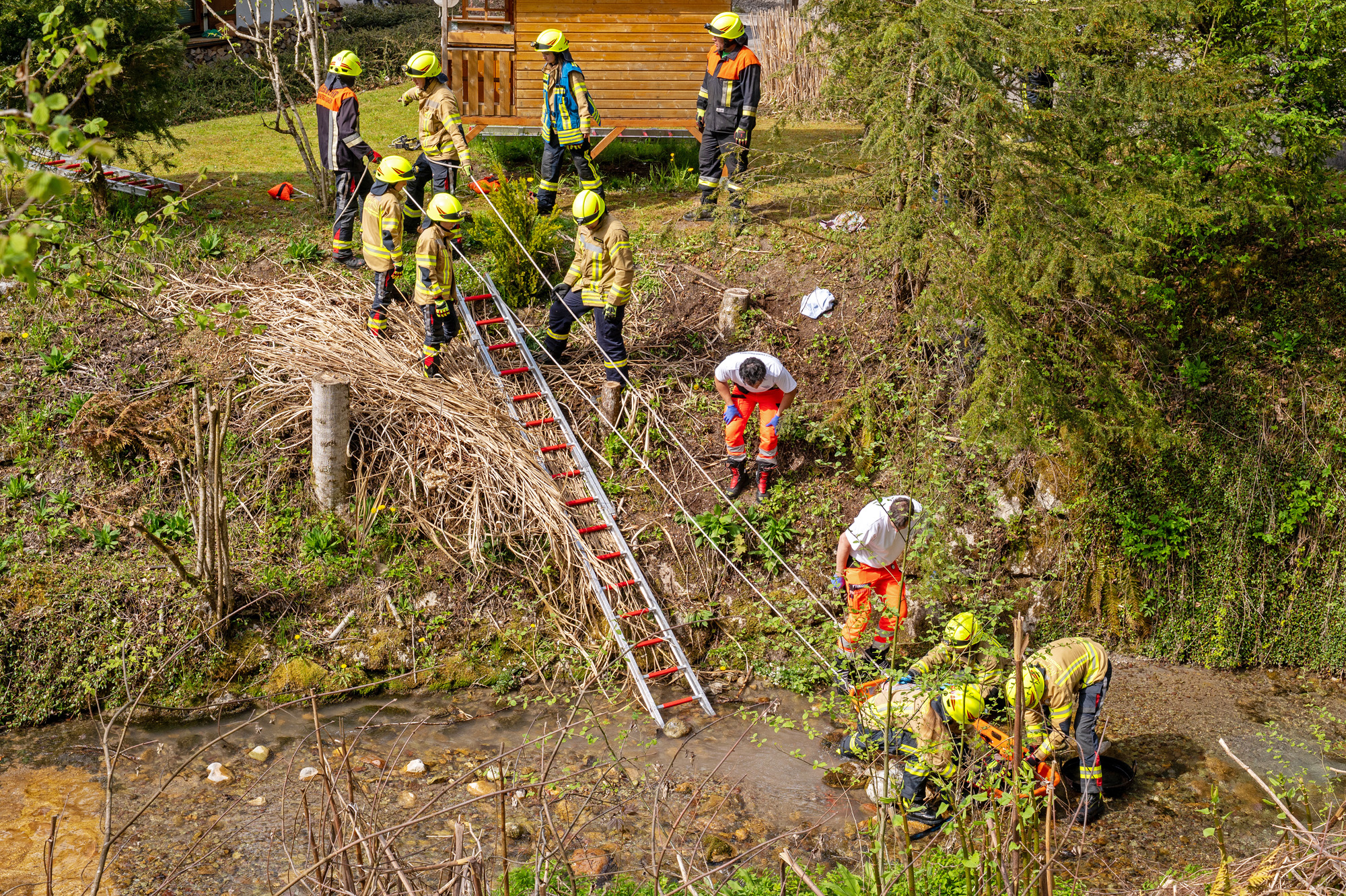BERCHTESGADEN – Eine 82-jährige Einheimische ist am Montagnachmittag gegen 15.30 Uhr über eine Böschung abgerutscht und mehrere Meter tief in den Bach im Höllgraben gestürzt. Dabei zog sie sich eine Kopfverletzung zu. Die Leitstelle Traunstein alarmierte das Berchtesgadener Rote Kreuz mit dem Notarzt und einem Rettungswagen, den Einsatzleiter Wasserrettungsdienst, die Freiwillige Feuerwehr Berchtesgaden und die Bergwacht Berchtesgaden zum Unfallort.