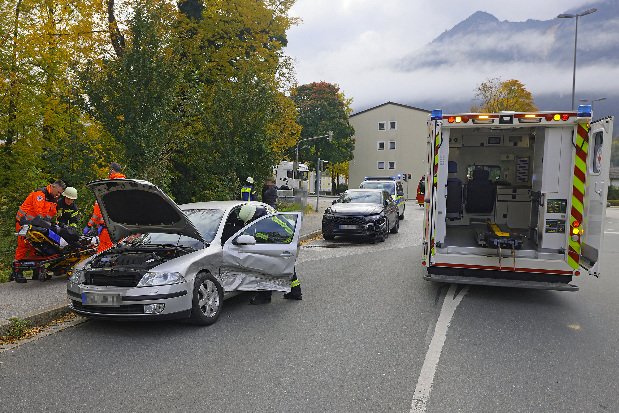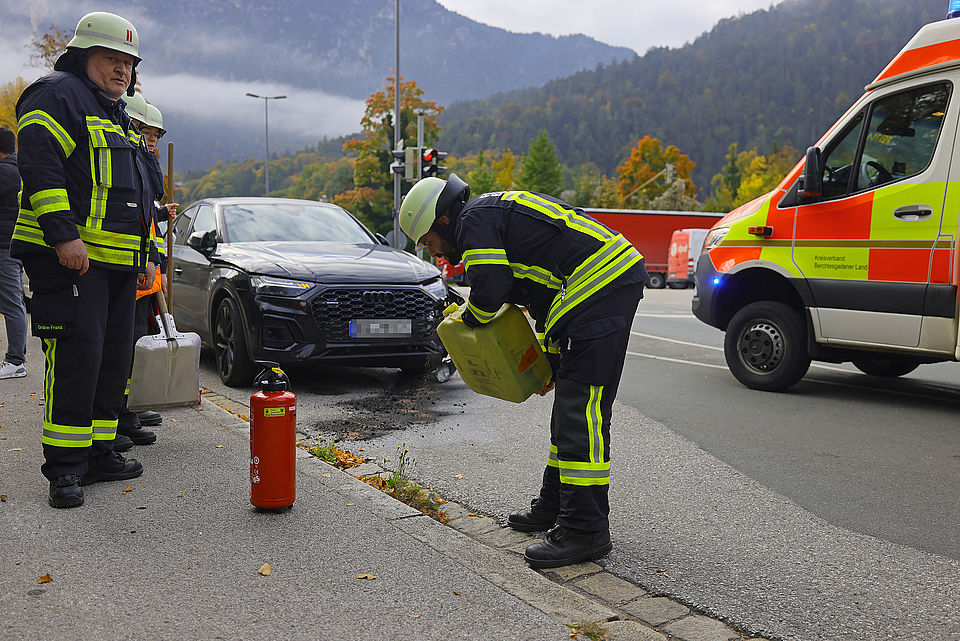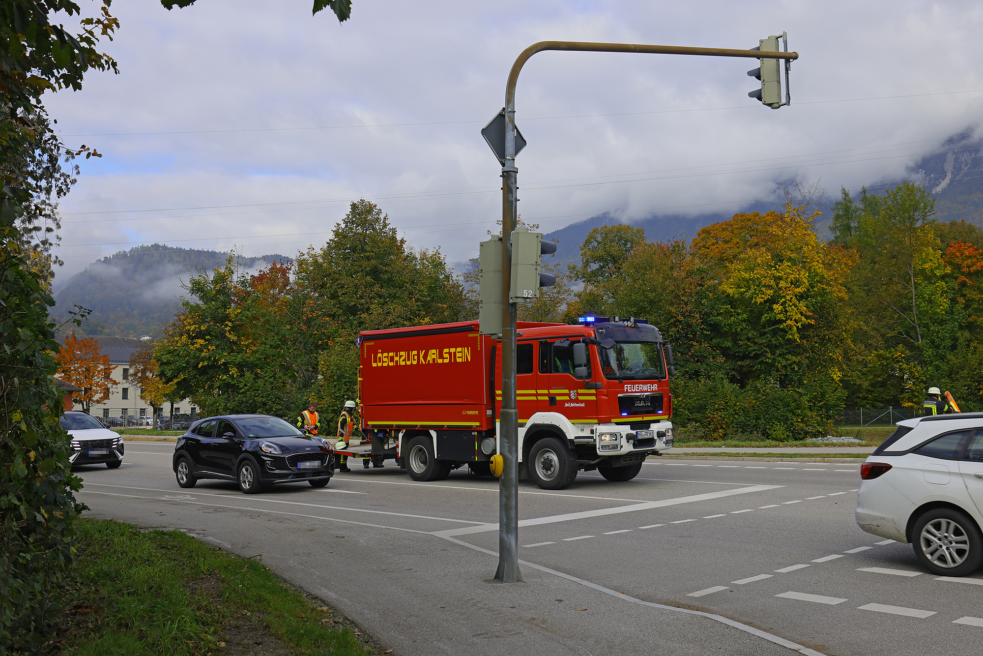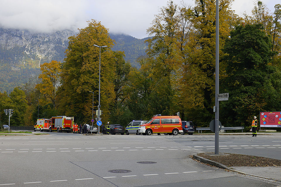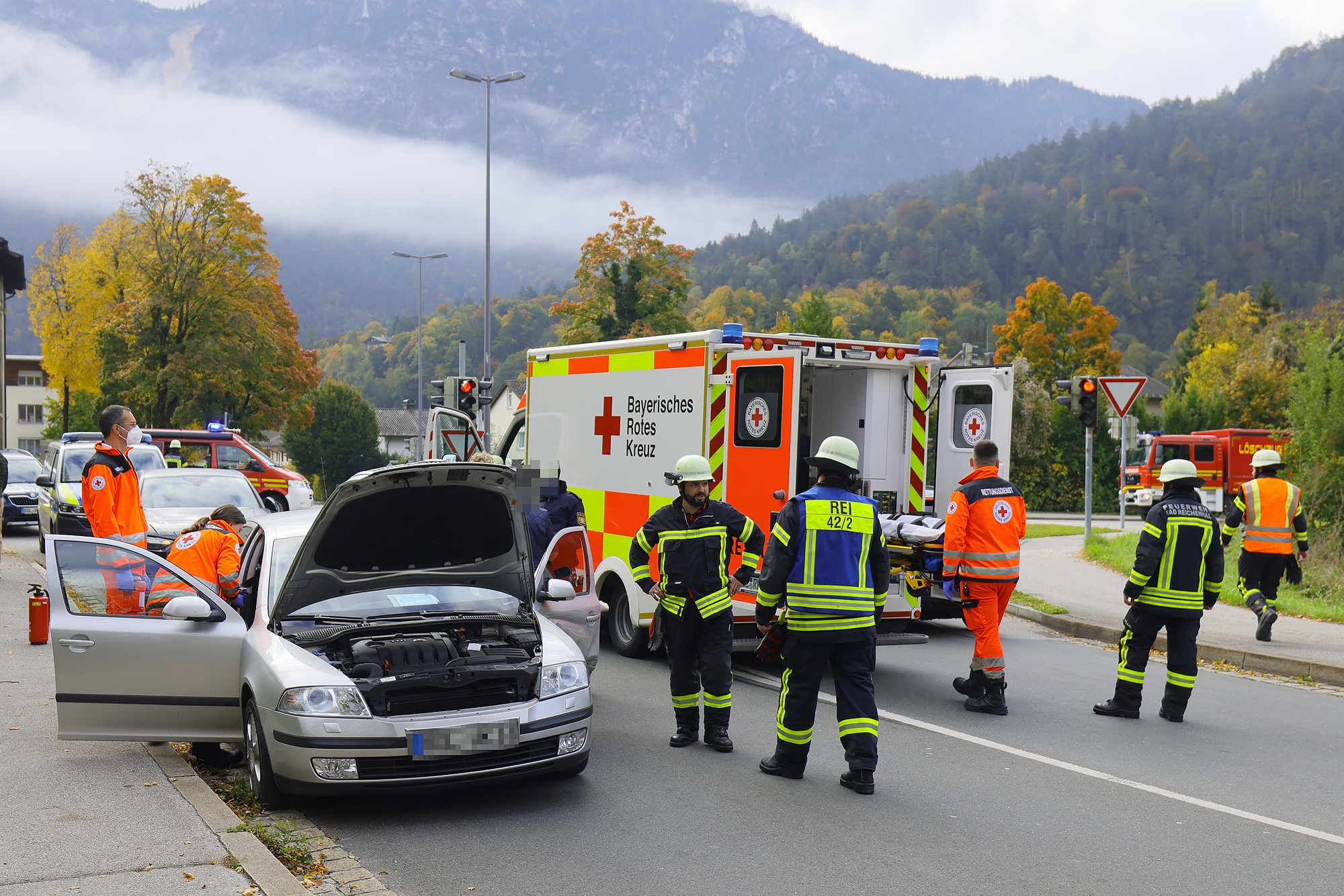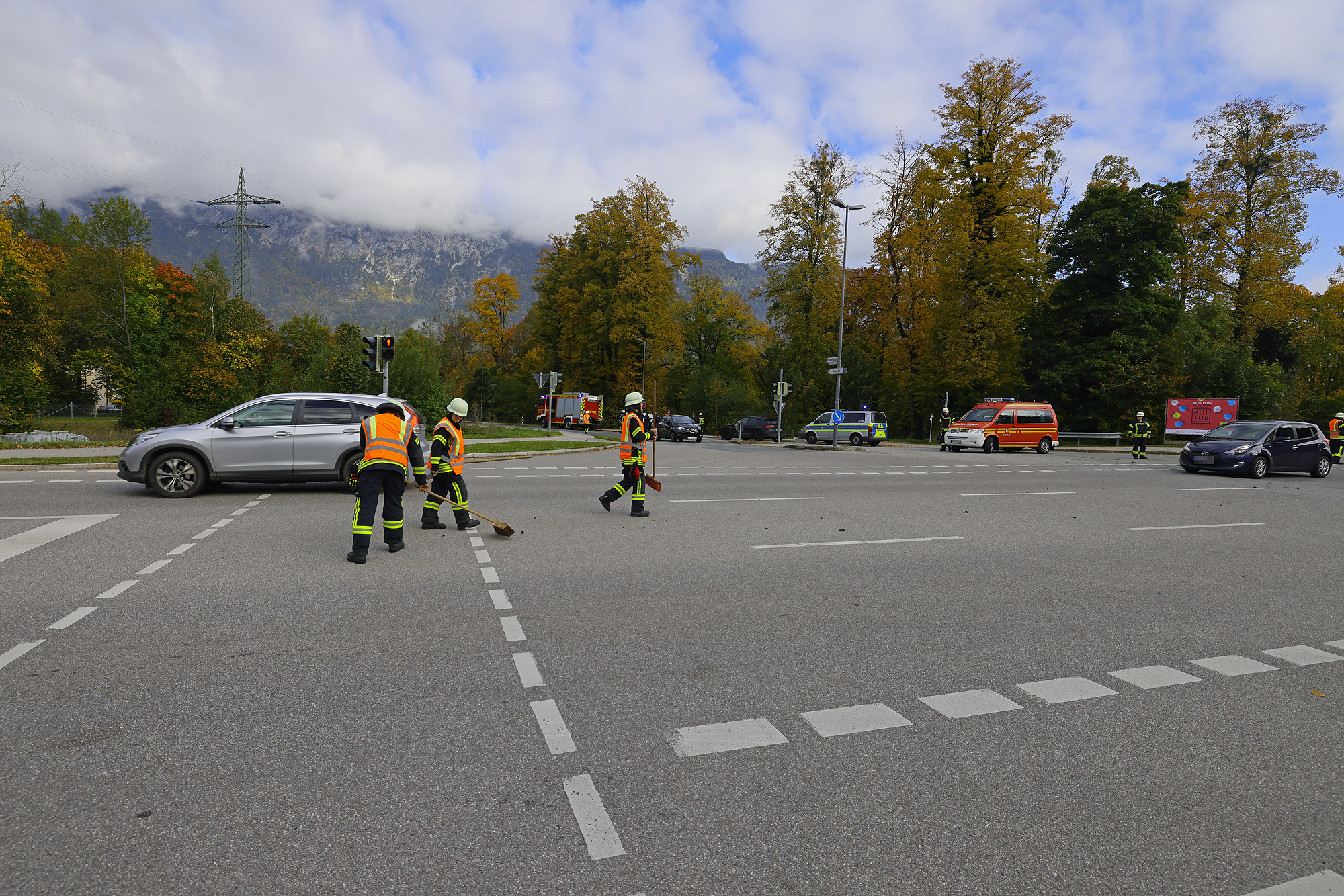 BAD REICHENHALL – Am Dienstagvormittag sind gegen 10 Uhr an der Kreuzung Nonner Straße / Staatsstraße 2101 kurz vor der Kretabrücke ein Skoda und ein Audi zusammengestoßen, wobei nach erster Einschätzung ein älterer Einheimischer im Skoda leicht verletzt wurde. Die Leitstelle Traunstein schickte die Freiwillige Feuerwehr Bad Reichenhall mit ihrem Löschzug Karlstein und einen Rettungswagen des Reichenhaller Roten Kreuzes zum Unfallort. Die Ehrenamtlichen der Feuerwehr mussten die Fahrbahn von Trümmern und ausgelaufenen Betriebsstoffen reinigen, den Verkehr regeln und den Brandschutz sicherstellen. Die Sanitäter des Roten Kreuzes versorgten den Verletzten vor Ort ambulant. Beamte der Reichenhaller Polizei nahmen den Unfallhergang auf.