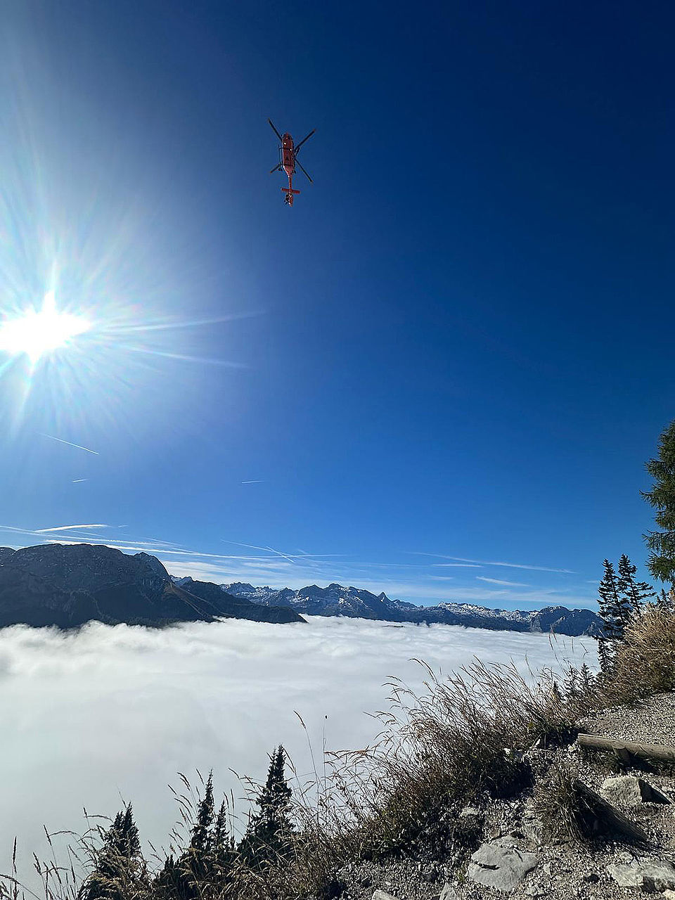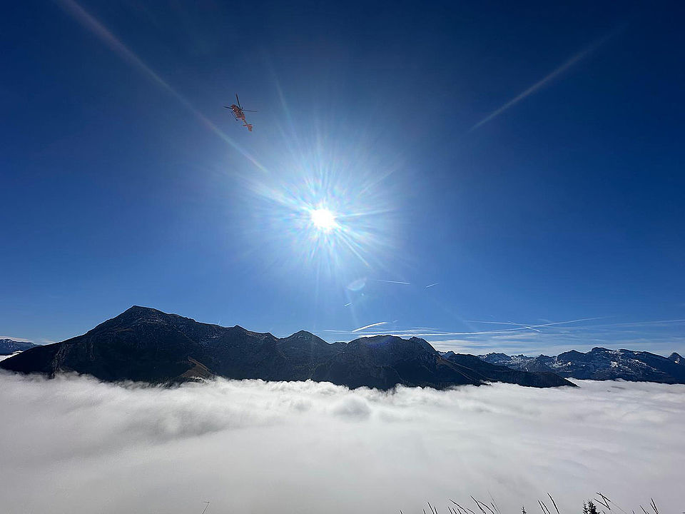 Am Dienstagnachmittag (14. Oktober) war die Bergwacht bei drei zum Teil zeitgleichen Einsätzen gefordert: Gegen 13.20 Uhr musste sie einen Wanderer mit Kreislaufbeschwerden oberhalb des Steinernen Bankerls am Königsweg abholen und ins Tal fahren. Rund eine Dreiviertelstunde zuvor hatte sie die Leitstelle zur Erstversorgung eines 80-jährigen akut Erkrankten in die Königsseer Straße geschickt, den dann der Landrettungsdienst des Roten Kreuzes mit dem Reichenhaller Notarzt und einem Berchtesgadener Rettungswagen weiter versorgte und in die Kreisklinik Bad Reichenhall brachte. Kurz nach 10.30 Uhr waren die Bergretter und „Christoph 14“ gemeinsam für eine ältere Frau mit Kreislaufkollaps am Jennergipfel gefordert; die Bergretter fuhren mit der Seilbahn zur Einsatzstelle und der Heli konnte über die Inversionsnebeldecke anfliegen, den Arzt absetzen und die versorgte Patientin dann mit der Winde aufnehmen.