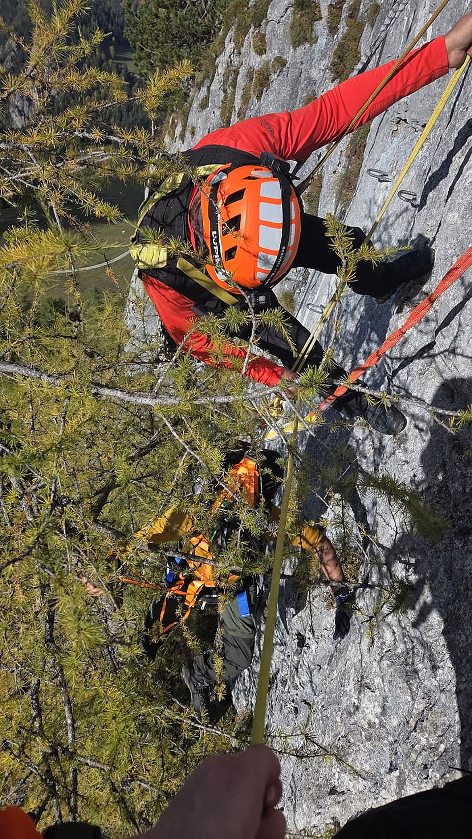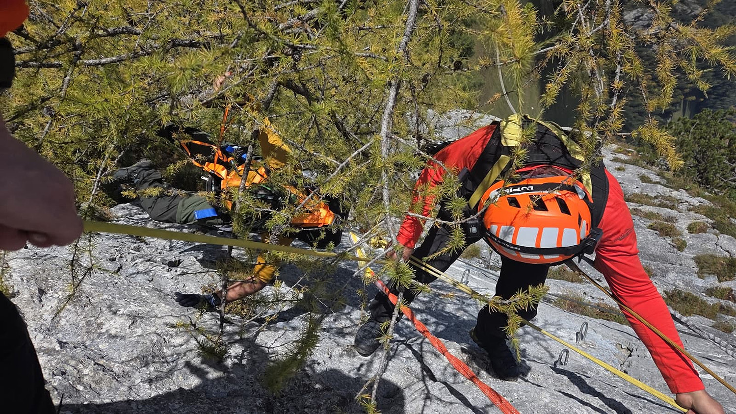 Bereits am frühen Mittwochnachmittag (15. Oktober) war die Bergwacht Berchtesgaden bei einem weiteren Klettersteig-Einsatz am gegenüberliegenden Kleinen Jenner gefordert, wo gegen 14 Uhr ein Urlauber im Bereich des sogenannten Finales im oberen Abschnitt des Laxersteigs in sein Klettersteigset gestürzt war, sich aber an einem nahegelegenen Baum festhalten konnte und deshalb unverletzt geblieben war. Die Bergretter bauten einen Flaschenzug auf, mit dem sie den Mann wieder auf den Steig hinaufzogen.