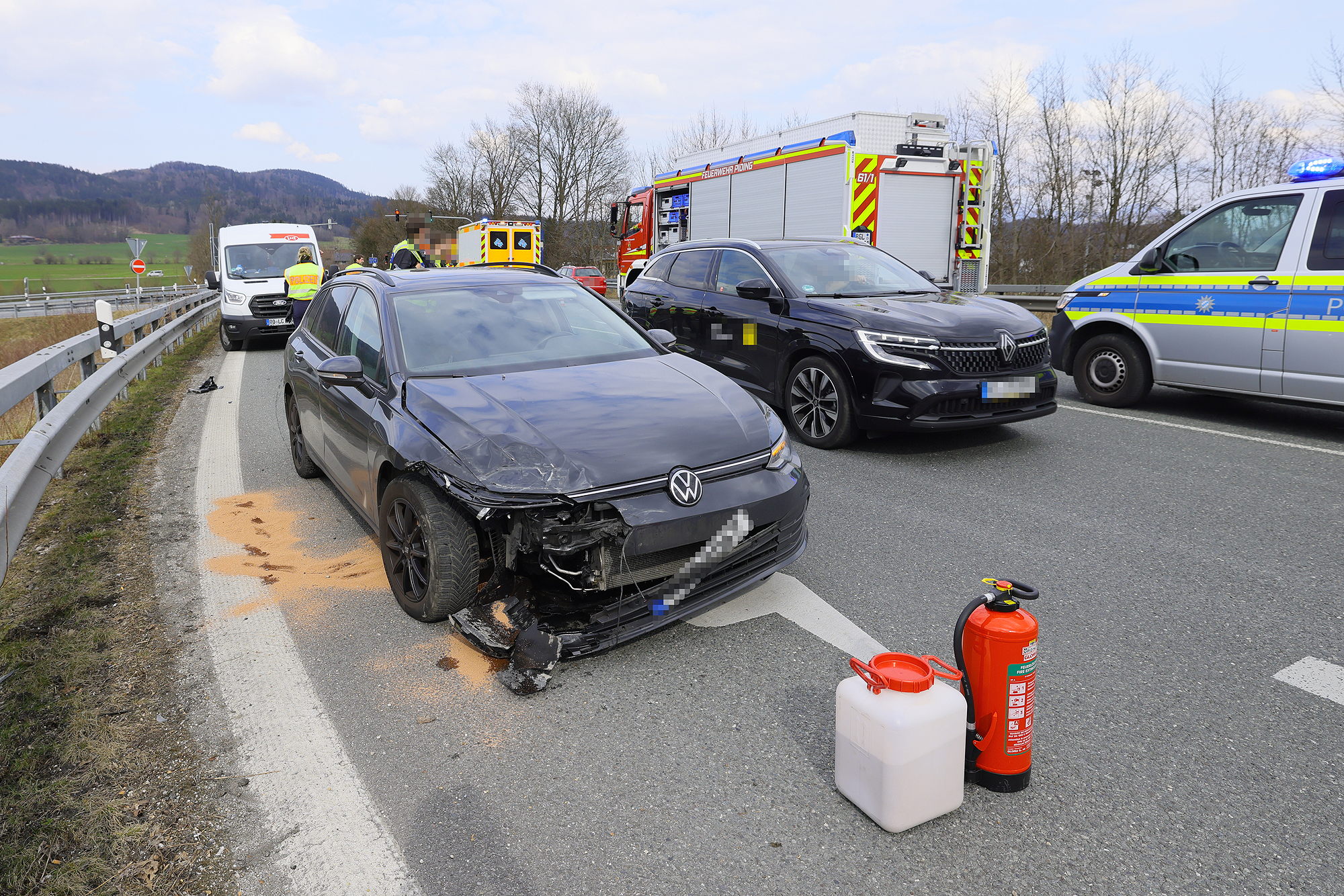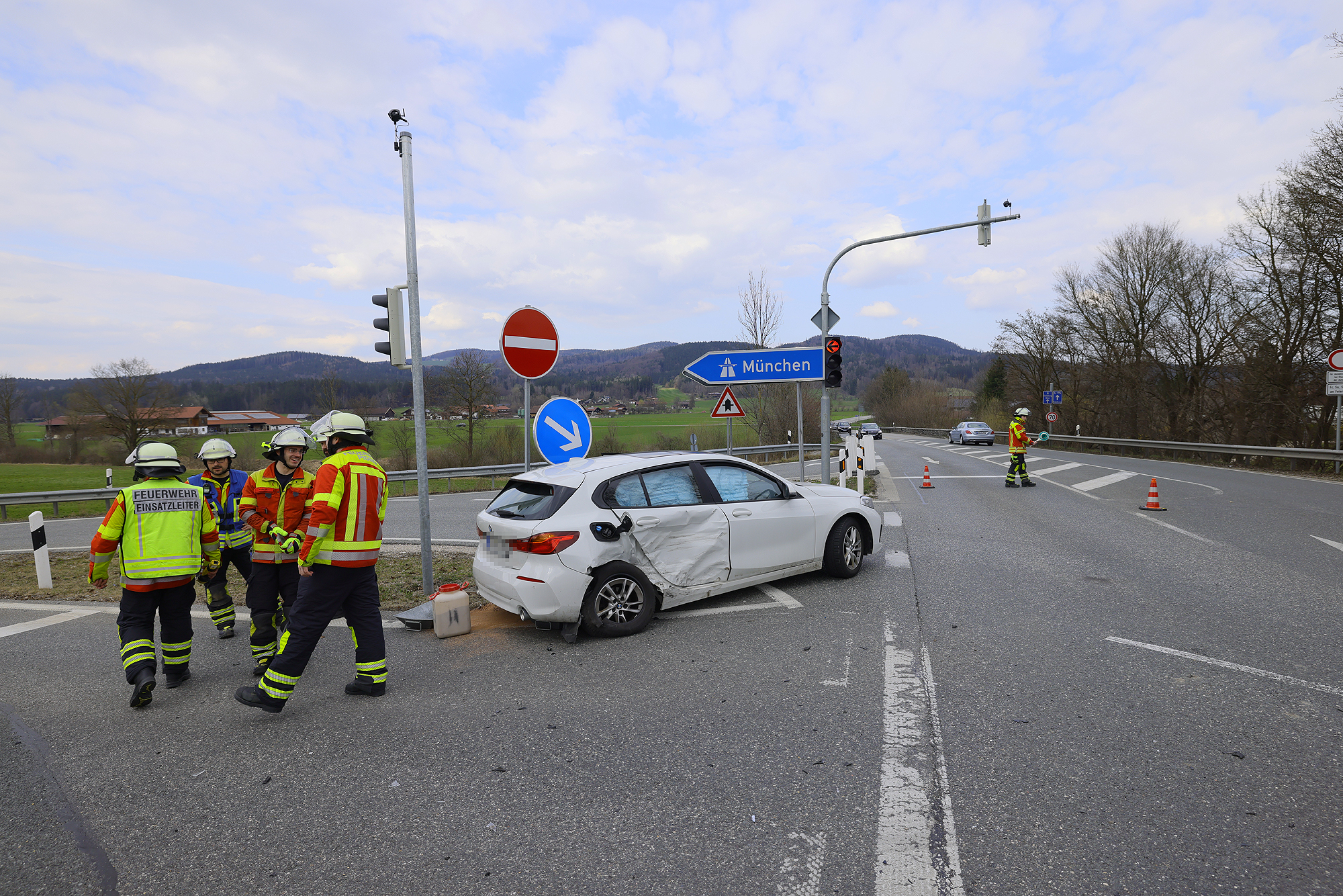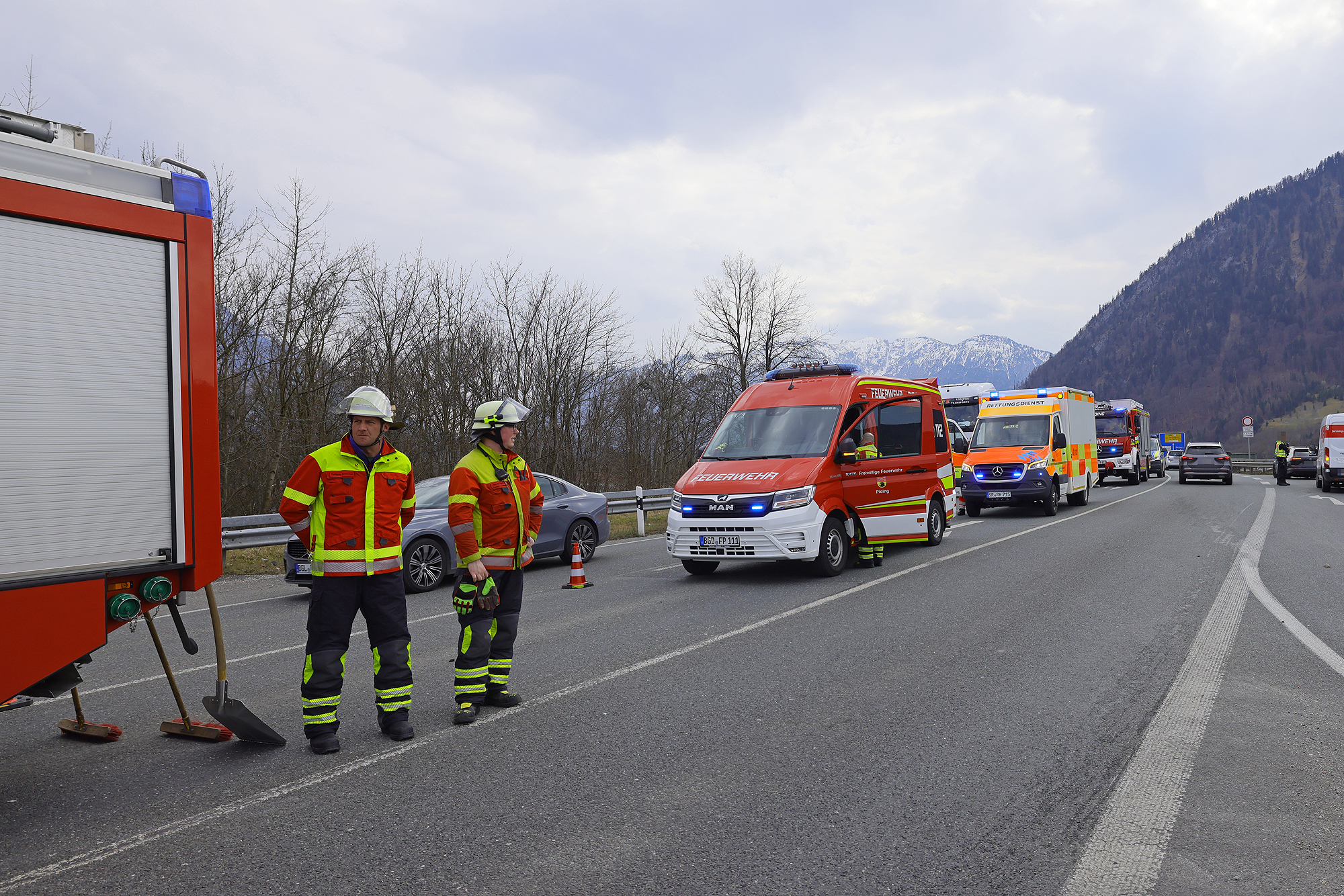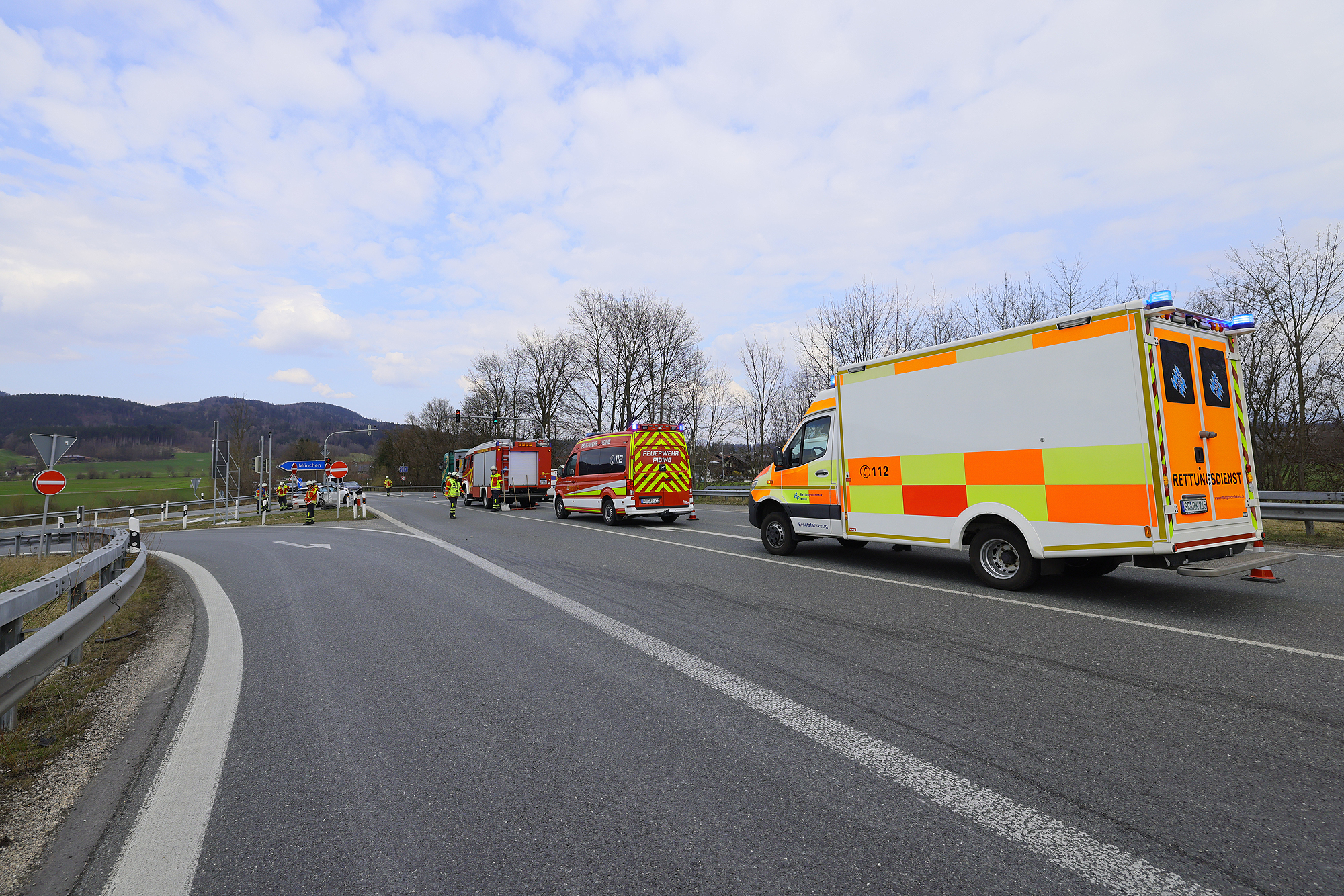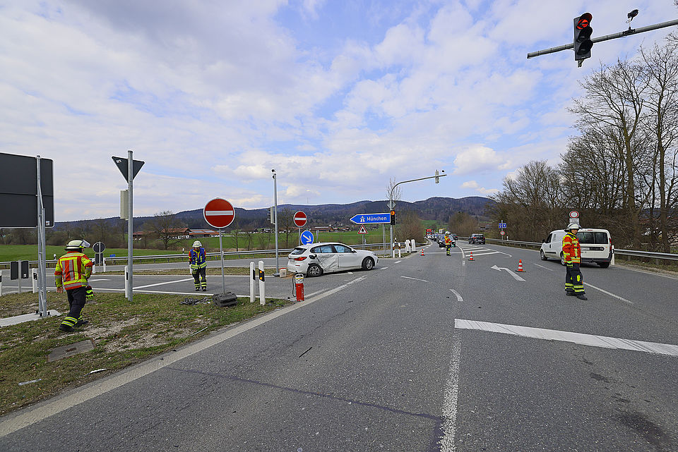 PIDING – Am Montagnachmittag sind gegen 14 Uhr auf der B20 an der Autobahnauffahrt ein 20-Jähriger aus Oberfranken mit seinem 1er BMW und ein 58-jähriger Einheimischer mit seinem VW Golf zusammengestoßen, wobei die beiden Fahrer nach erster Einschätzung mit leichten Verletzungen davonkamen. Die Leitstelle Traunstein schickte die Freiwillige Feuerwehr Piding und einen Rettungswagen des Reichenhaller Roten Kreuzes zum Unfallort. Das Rote Kreuz brachte beide Verletzten zur weiteren Untersuchung in die Kreisklinik Bad Reichenhall. Die Feuerwehr stellte den Brandschutz sicher, reinigte die Fahrbahn und leitete den restlichen Verkehr wechselseitig an der Einsatzstelle vorbei. Beamte der Reichenhaller Polizei nahmen den genauen Unfallhergang auf.