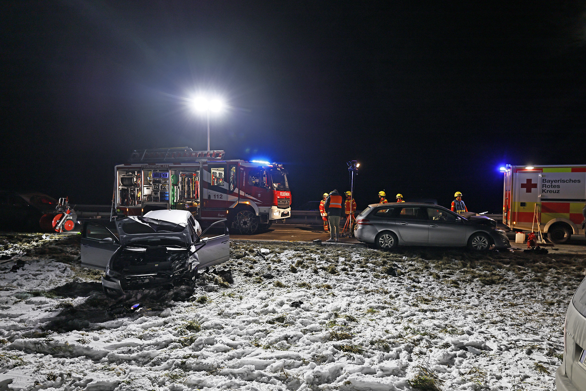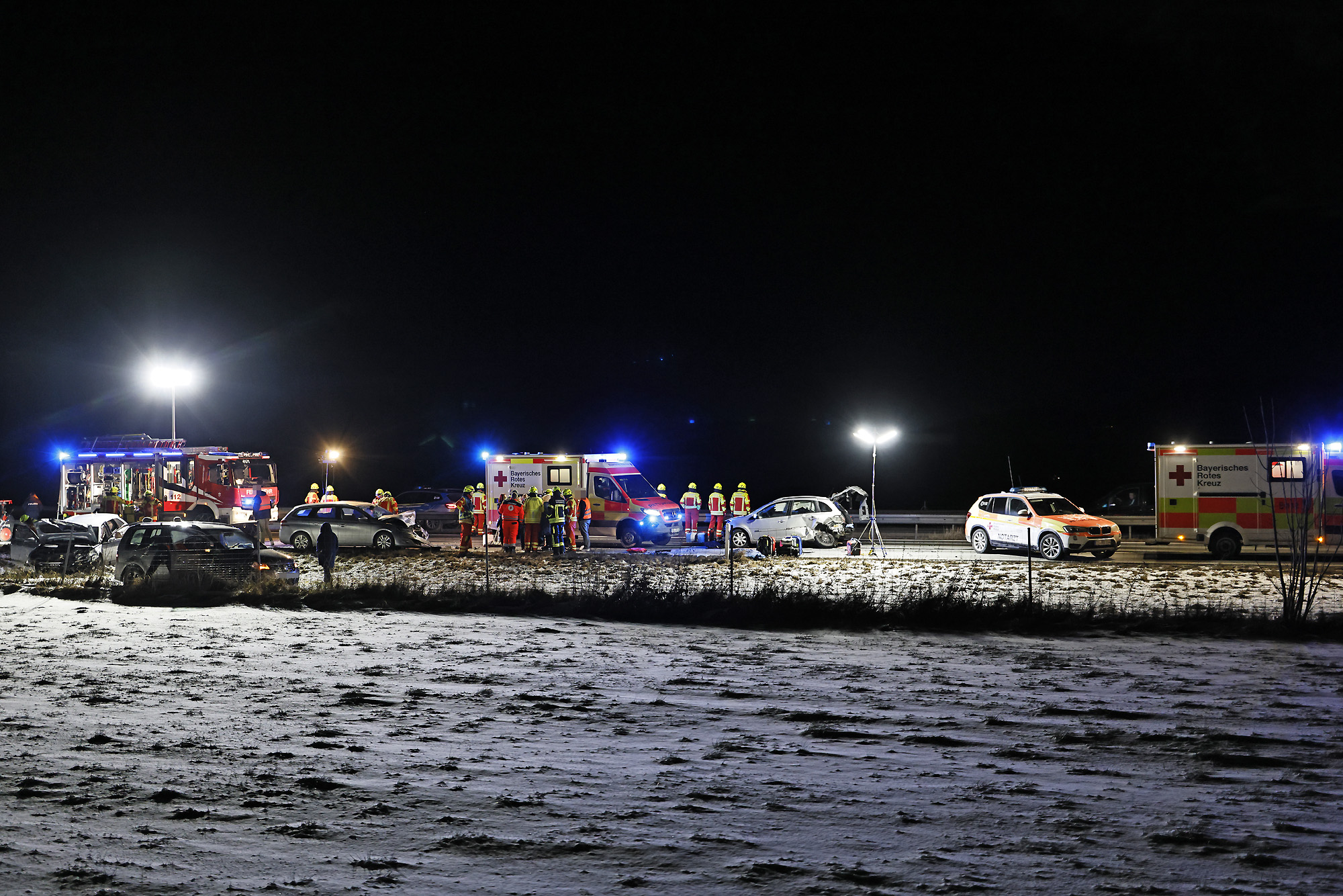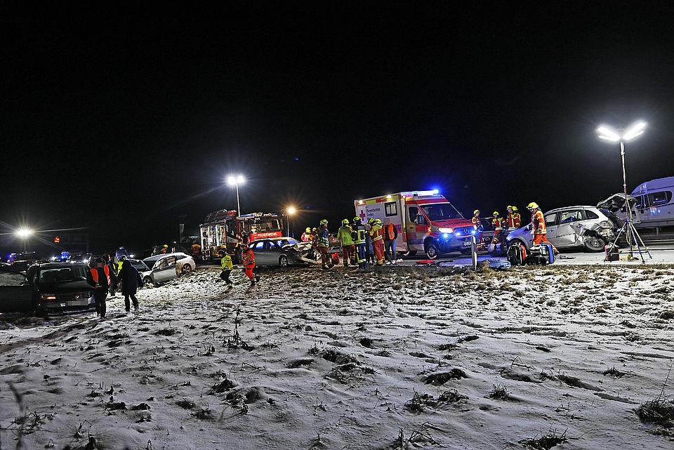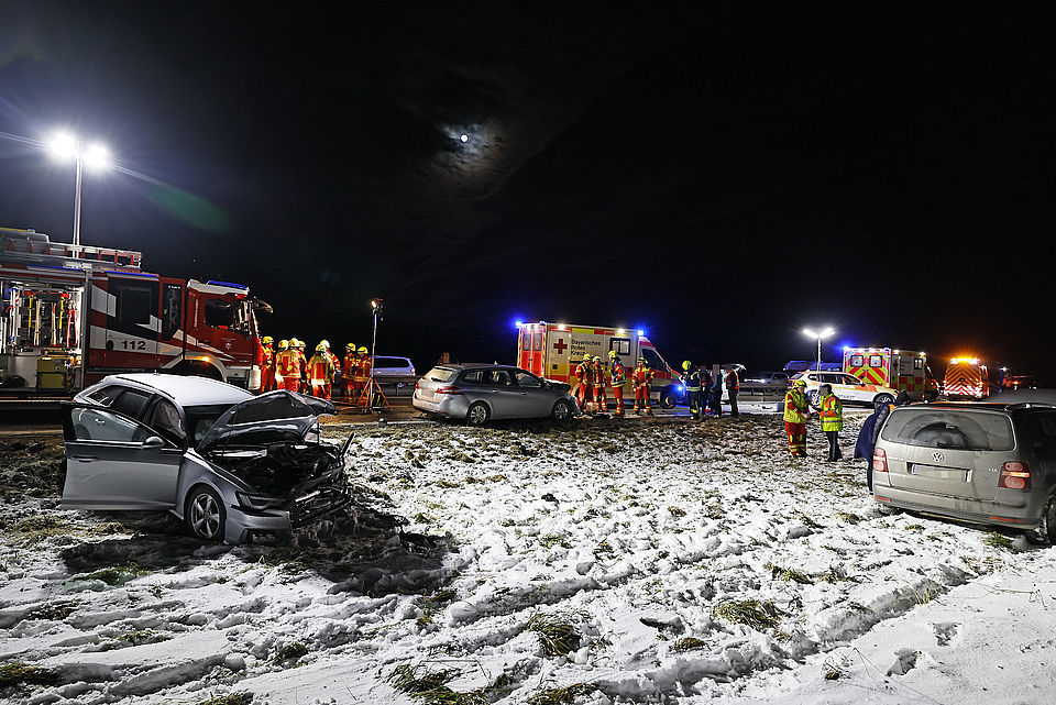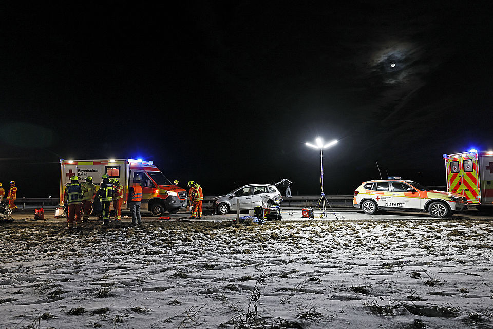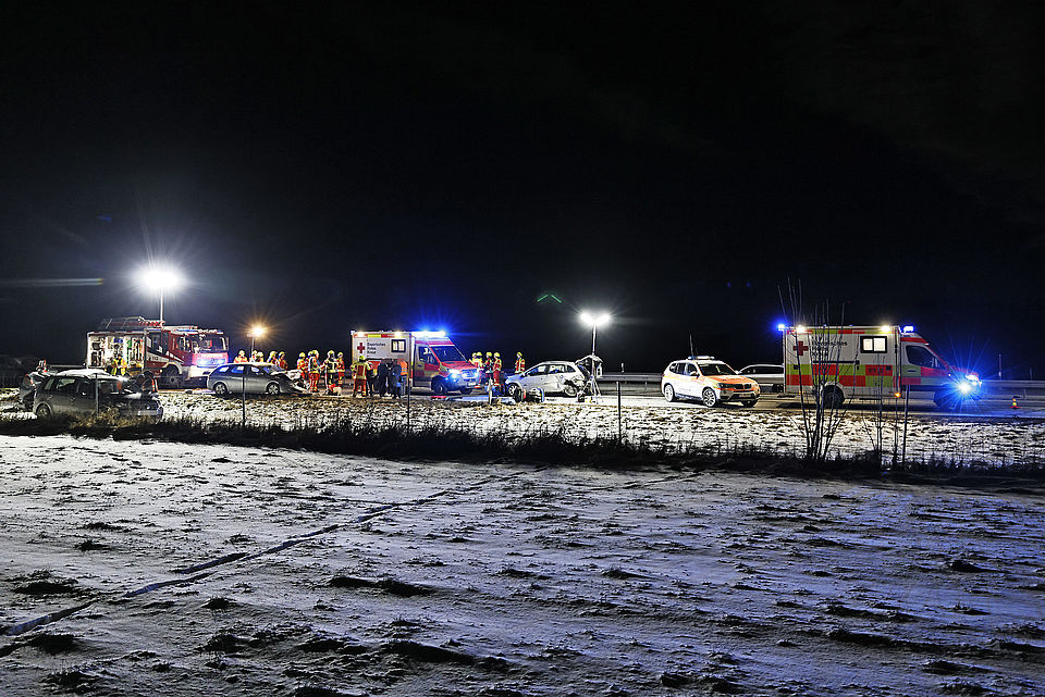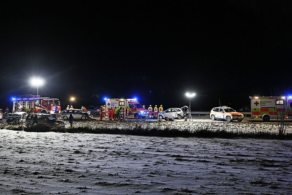 Eine Autofahrerin war offenbar ins Schleudern geraten, wobei ihr querstehendes Auto von einem nachfolgendem Fahrzeug erfasst und gegen ein drittes Fahrzeug geschleudert wurde; ein vierter Autofahrer konnte noch rechtzeitig in die angrenzende Wiese ausweichen. Weitere Verkehrsteilnehmer leisteten Erste Hilfe und setzten einen Notruf ab, woraufhin die Leitstelle Traunstein aufgrund der zunächst unklaren Zahl an Verletzten neben der Freiwilligen Feuerwehr Anger das Rote Kreuz mit vier Rettungswagen aus Bad Reichenhall, Siegsdorf und Teisendorf, den Notärzten aus Bad Reichenhall und Ruhpolding, dem Freilassinger Krankenwagen und dem Einsatzleiter Rettungsdienst losschickte.