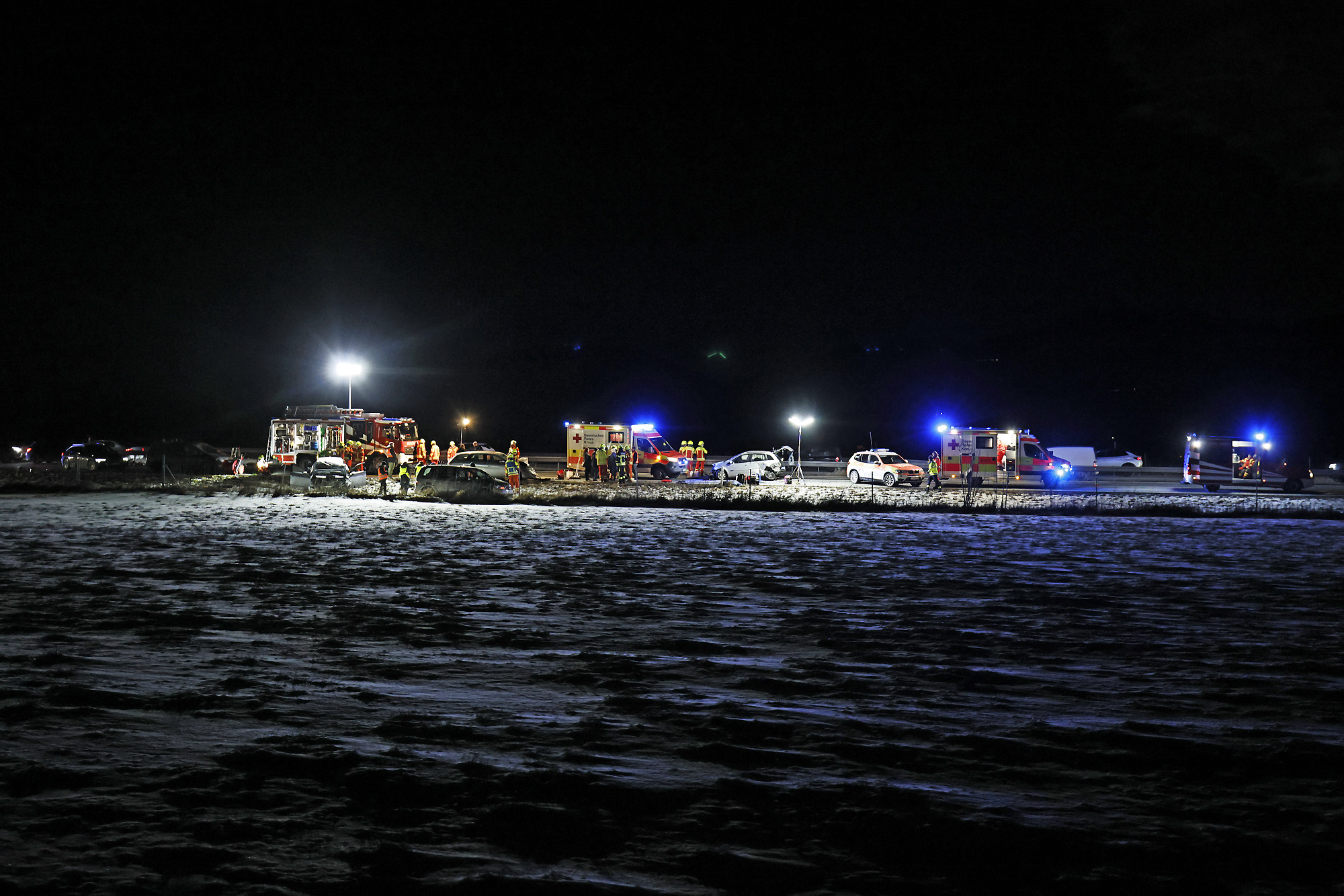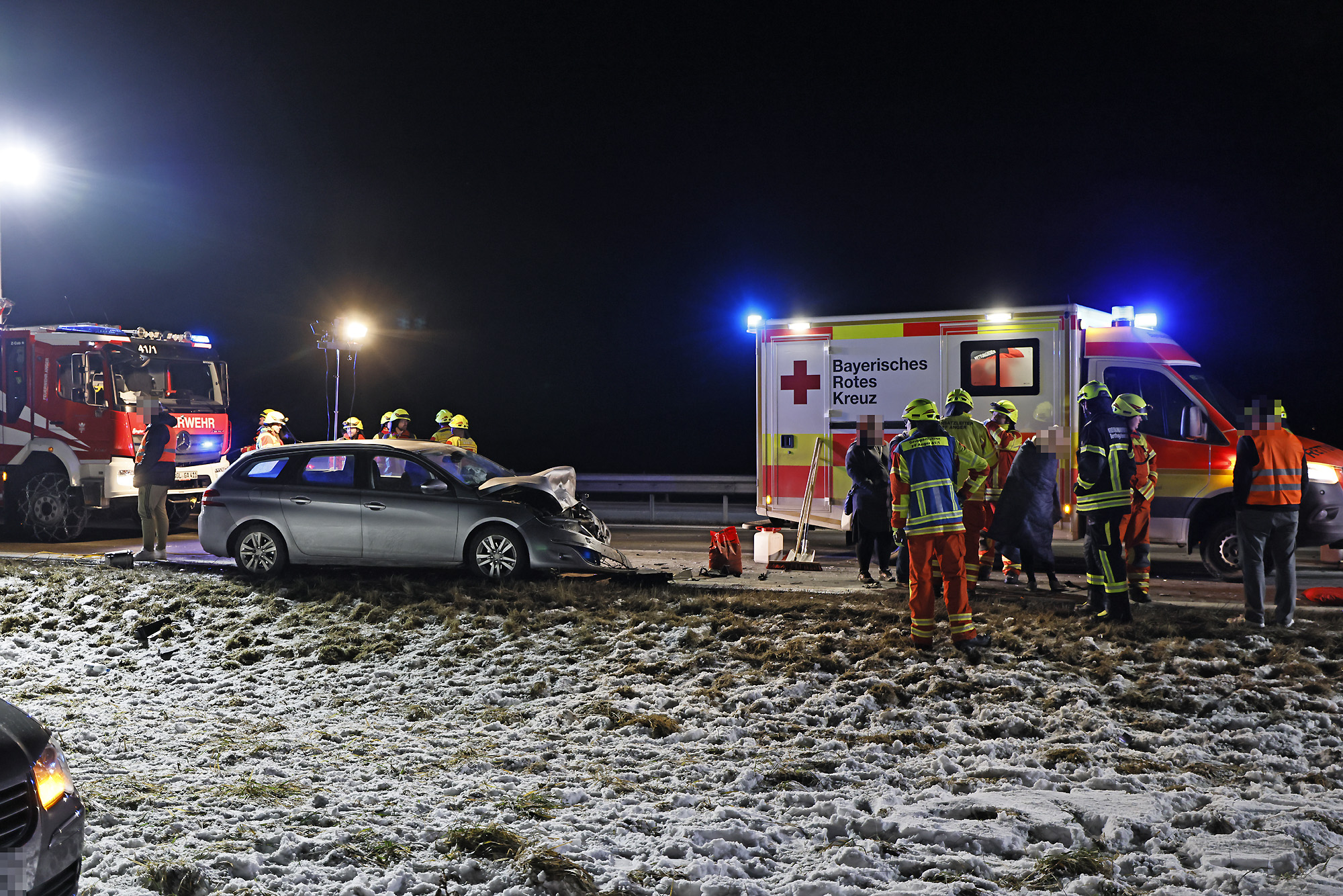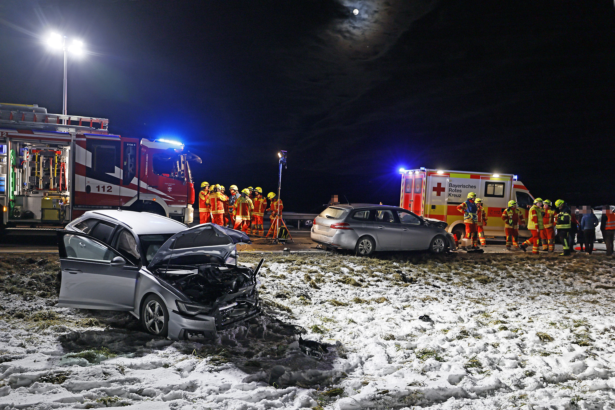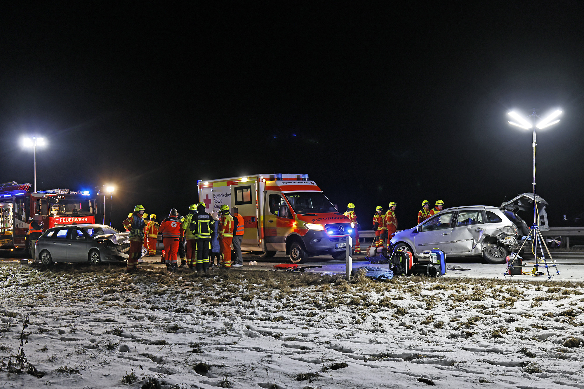 Eine Autofahrerin war offenbar ins Schleudern geraten, wobei ihr querstehendes Auto von einem nachfolgendem Fahrzeug erfasst und gegen ein drittes Fahrzeug geschleudert wurde; ein vierter Autofahrer konnte noch rechtzeitig in die angrenzende Wiese ausweichen. Weitere Verkehrsteilnehmer leisteten Erste Hilfe und setzten einen Notruf ab, woraufhin die Leitstelle Traunstein aufgrund der zunächst unklaren Zahl an Verletzten neben der Freiwilligen Feuerwehr Anger das Rote Kreuz mit vier Rettungswagen aus Bad Reichenhall, Siegsdorf und Teisendorf, den Notärzten aus Bad Reichenhall und Ruhpolding, dem Freilassinger Krankenwagen und dem Einsatzleiter Rettungsdienst losschickte.