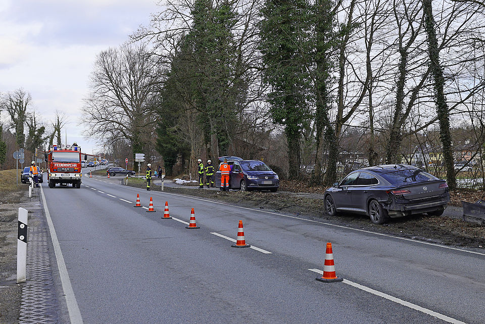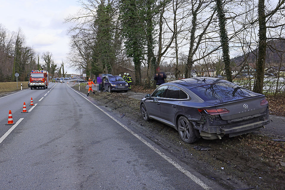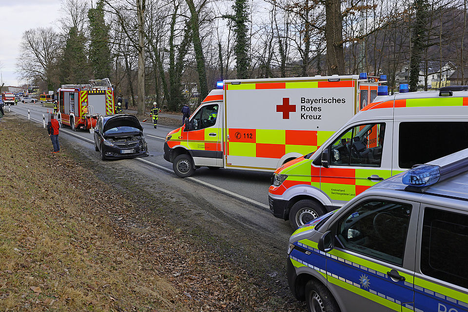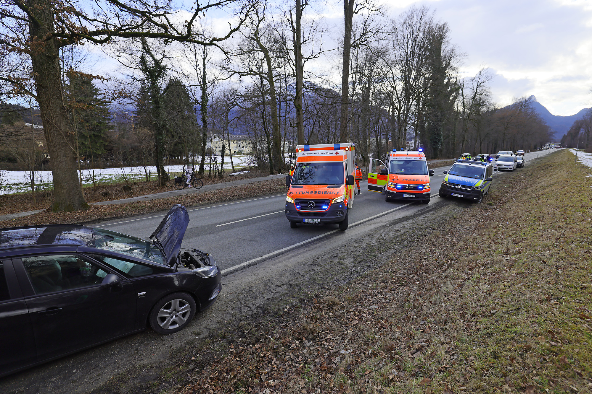BAD REICHENHALL – Am Samstagnachmittag sind kurz nach 14 Uhr auf der Reichenhaller Umgehungsstraße (B21) zwischen der Johann-Häusl- und der Vogelthennstraße ein VW Sharan aus Wien, ein Opel Zafira aus dem Landkreis und ein VW Arteon aus Ungarn zusammengestoßen. Nach erster Einschätzung des Roten Kreuzes wurden von den insgesamt neun Beteiligten zwei verletzt. Einsatzkräfte der Reichenhaller Feuerwehr und des Löschzugs Marzoll sicherten die Unfallstelle ab, reinigten die Fahrbahn, stellten den Brandschutz sicher und leiteten den restlichen Verkehr lokal durchs Stadtgebiet um. Das Rote Kreuz war mit einem Reichenhaller Rettungswagen und dem Berchtesgadener Krankenwagen vor Ort und brachte die Verletzten zur weiteren Untersuchung in die Kreisklinik Bad Reichenhall. Die Reichenhaller Polizei nahm den Unfall auf.