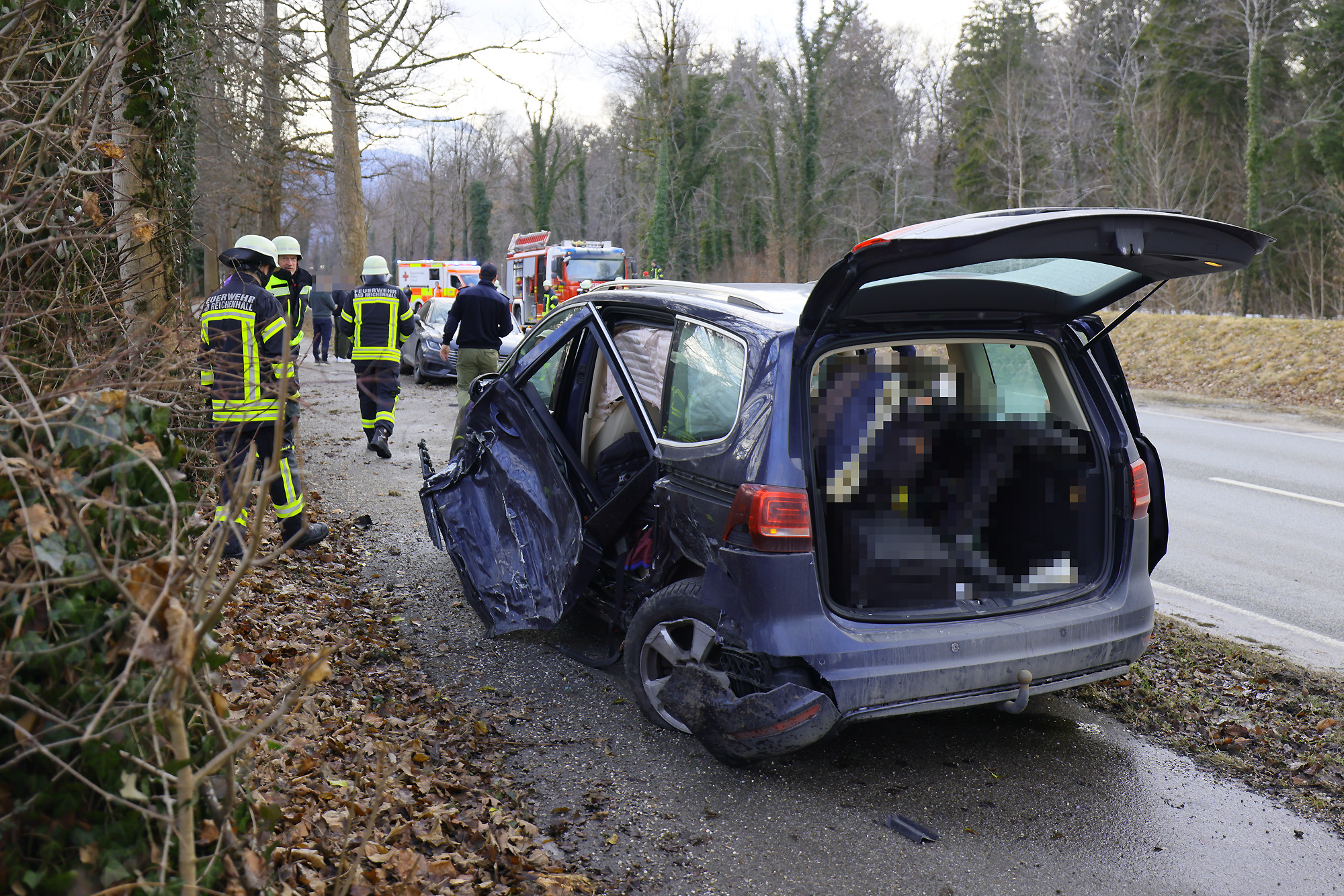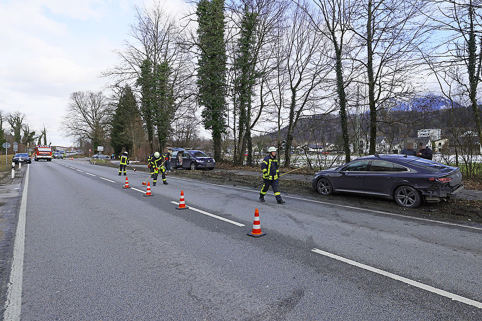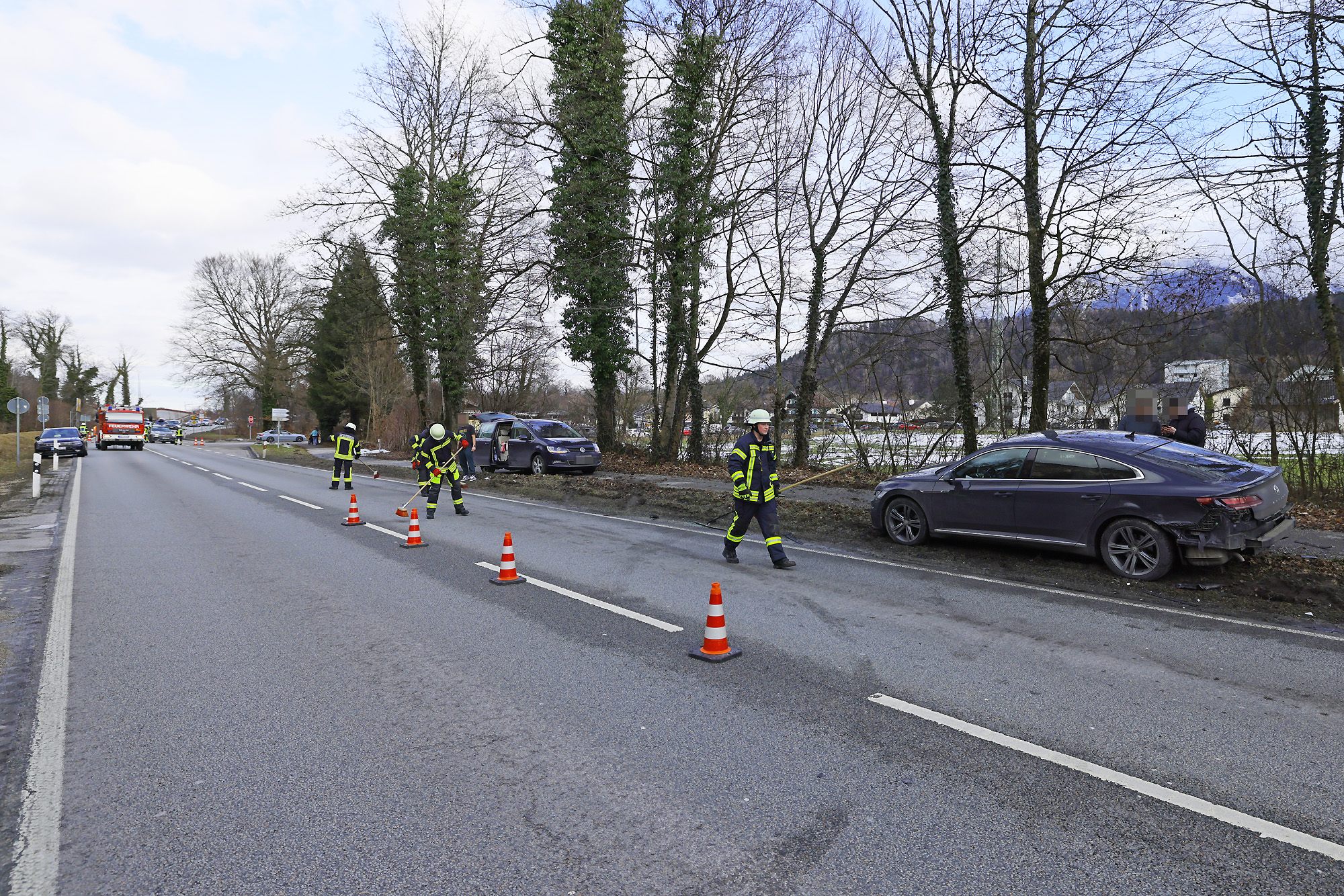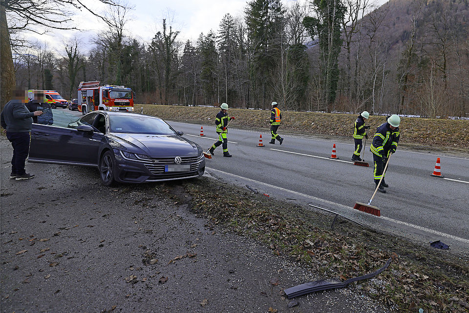 BAD REICHENHALL – Am Samstagnachmittag sind kurz nach 14 Uhr auf der Reichenhaller Umgehungsstraße (B21) zwischen der Johann-Häusl- und der Vogelthennstraße ein VW Sharan aus Wien, ein Opel Zafira aus dem Landkreis und ein VW Arteon aus Ungarn zusammengestoßen. Nach erster Einschätzung des Roten Kreuzes wurden von den insgesamt neun Beteiligten zwei verletzt. Einsatzkräfte der Reichenhaller Feuerwehr und des Löschzugs Marzoll sicherten die Unfallstelle ab, reinigten die Fahrbahn, stellten den Brandschutz sicher und leiteten den restlichen Verkehr lokal durchs Stadtgebiet um. Das Rote Kreuz war mit einem Reichenhaller Rettungswagen und dem Berchtesgadener Krankenwagen vor Ort und brachte die Verletzten zur weiteren Untersuchung in die Kreisklinik Bad Reichenhall. Die Reichenhaller Polizei nahm den Unfall auf.