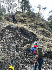 Vierbeiner und ihre Frauchen und Herrchen trainieren mit der Polizeihubschrauberstaffel Bayern Rettungswinden-Einsätze und das Ein- und Aussteigen bei laufender Maschine
